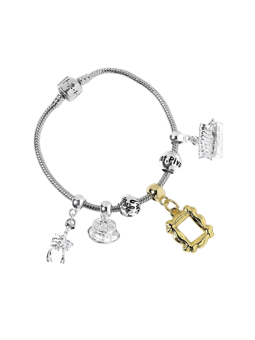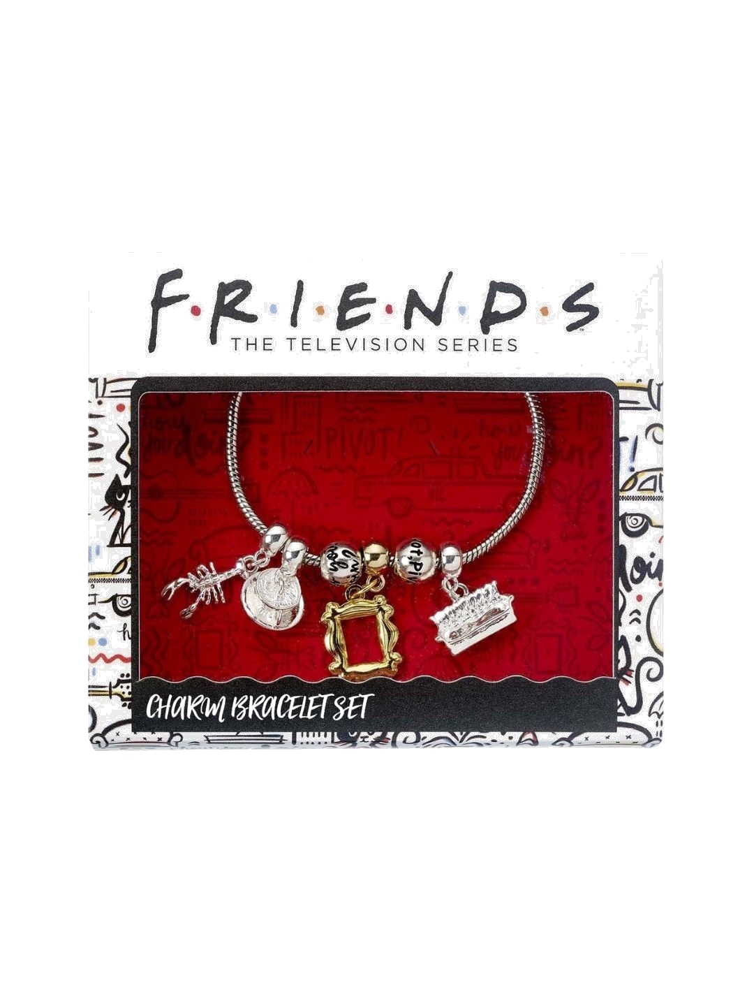 Αυτό το βραχιόλι περιέχει 4 φυλαχτά εμπνευσμένα από την διάσημη σειρά Friends. Είναι το τέλειο δώρο για κάθε φαν! - Επίσημο προϊόν - Made from silver plated zinc alloy - Διάσταση: 19 εκ. - Silver plated bracelet and charms, one gold plated - Imported