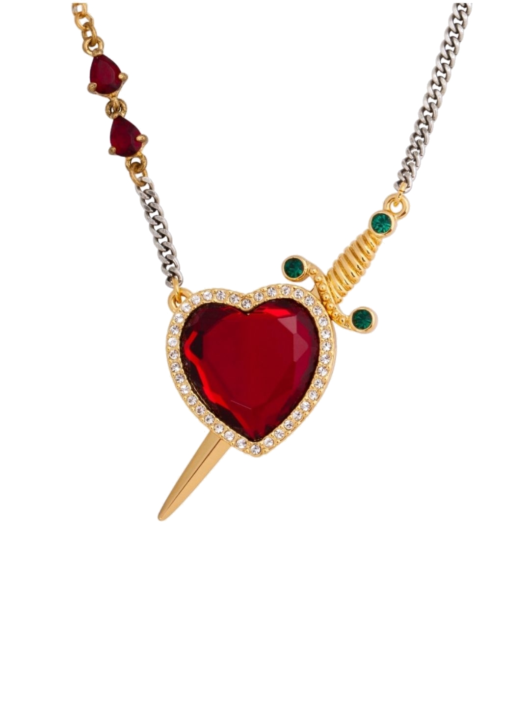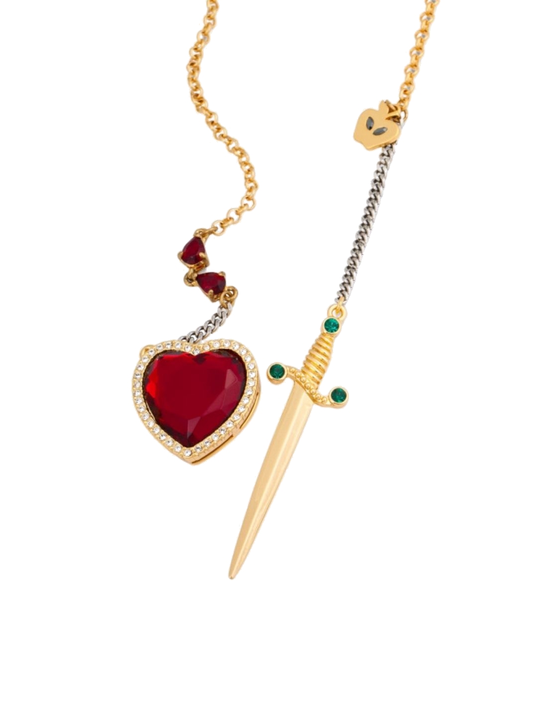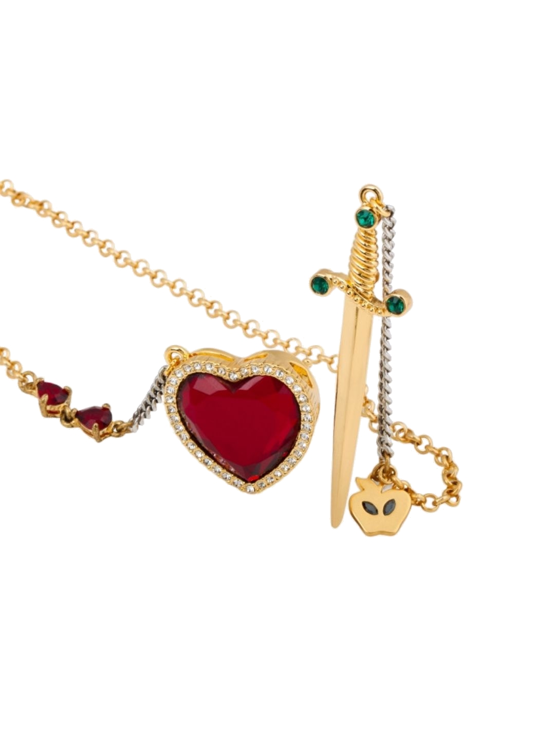 Disney Couture Snow White Gold-Plated Red Crystal Heart & Dagger Necklace