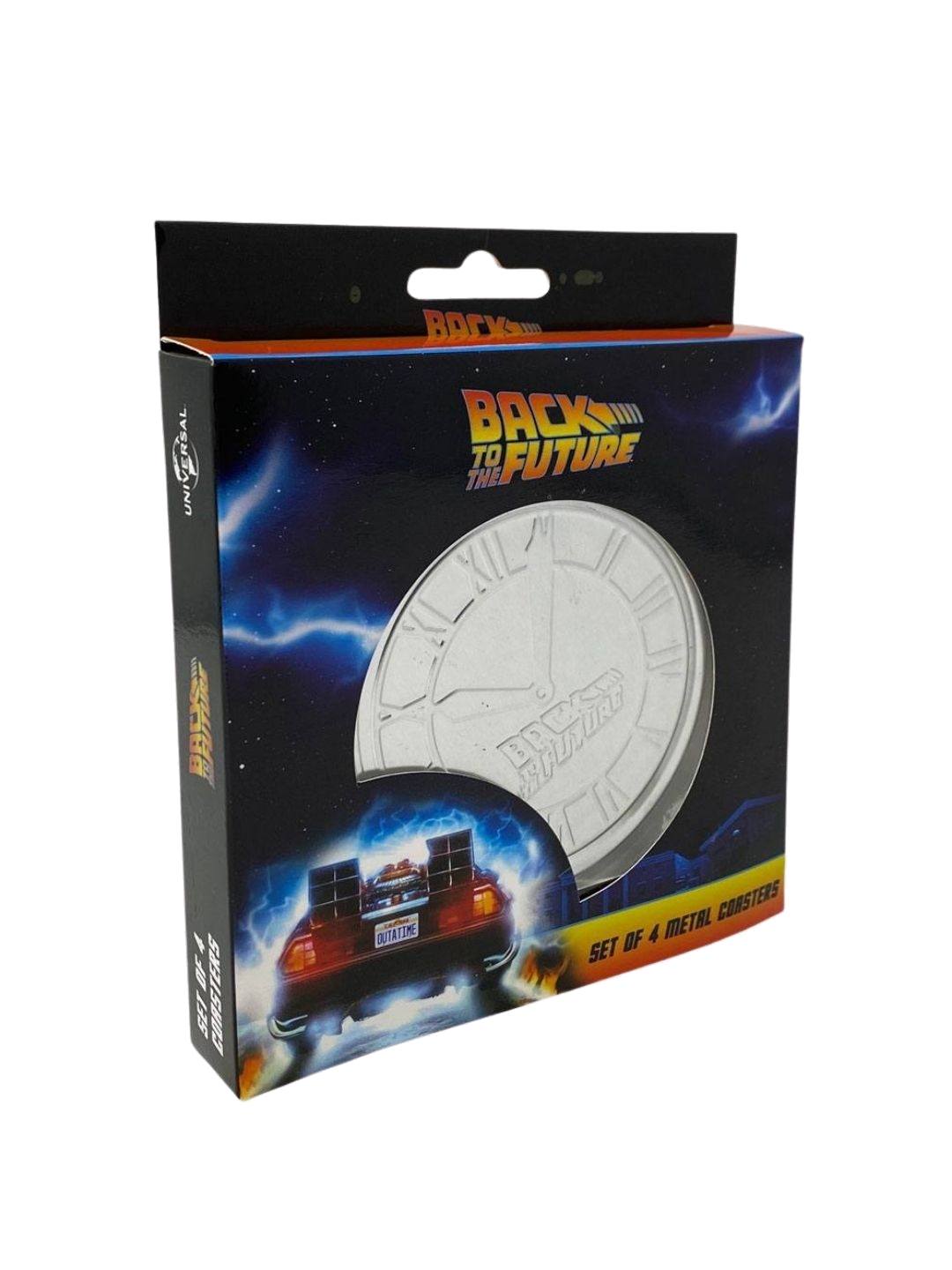 Προστατέψτε τις επιφάνειές σας με στυλ και νοσταλγία με τα Σουβέρ Back to the Future 4-Pack! Αυτό το σετ περιλαμβάνει 4 μεταλλικά σουβέρ με δύο ανάγλυφα σχέδια από την κλασική ταινία "Back to the Future": το Ρολόι στον Πύργο και το Hoverboard. Κάθε σουβέρ έχει διάμετρο 89mm και διαθέτει βάση από φελλό για να μην γλιστράει, εξασφαλίζοντας σταθερότητα και προστασία. Τα σουβέρ παραδίδονται σε ένα κουτί προβολής, καθιστώντας τα ιδανικά για δώρο ή για συλλογή.