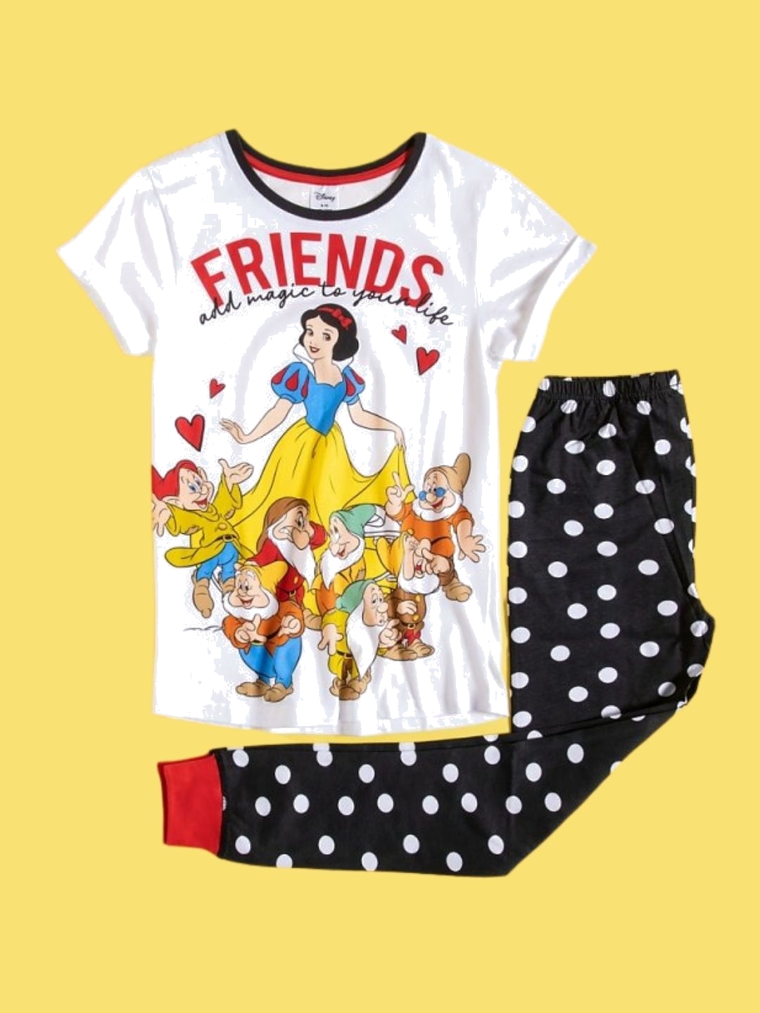 Κάθε φαν της Disney μπορεί να απολαύσει ονείρα γλυκά με αυτές τις αξιολάτρευτες πιτζάμες που απεικονίζουν τη Χιονάτη και τους 7 Νάνους, μαζί με το μαγευτικό μήνυμα "Friends add magic to your life!". Ιδανικές για χαλάρωση και ύπνο, προσφέρουν άνεση, απαλότητα και στυλ, ενώ αποτελούν την τέλεια επιλογή για κάθε λάτρη των κλασικών παραμυθιών της Disney.
