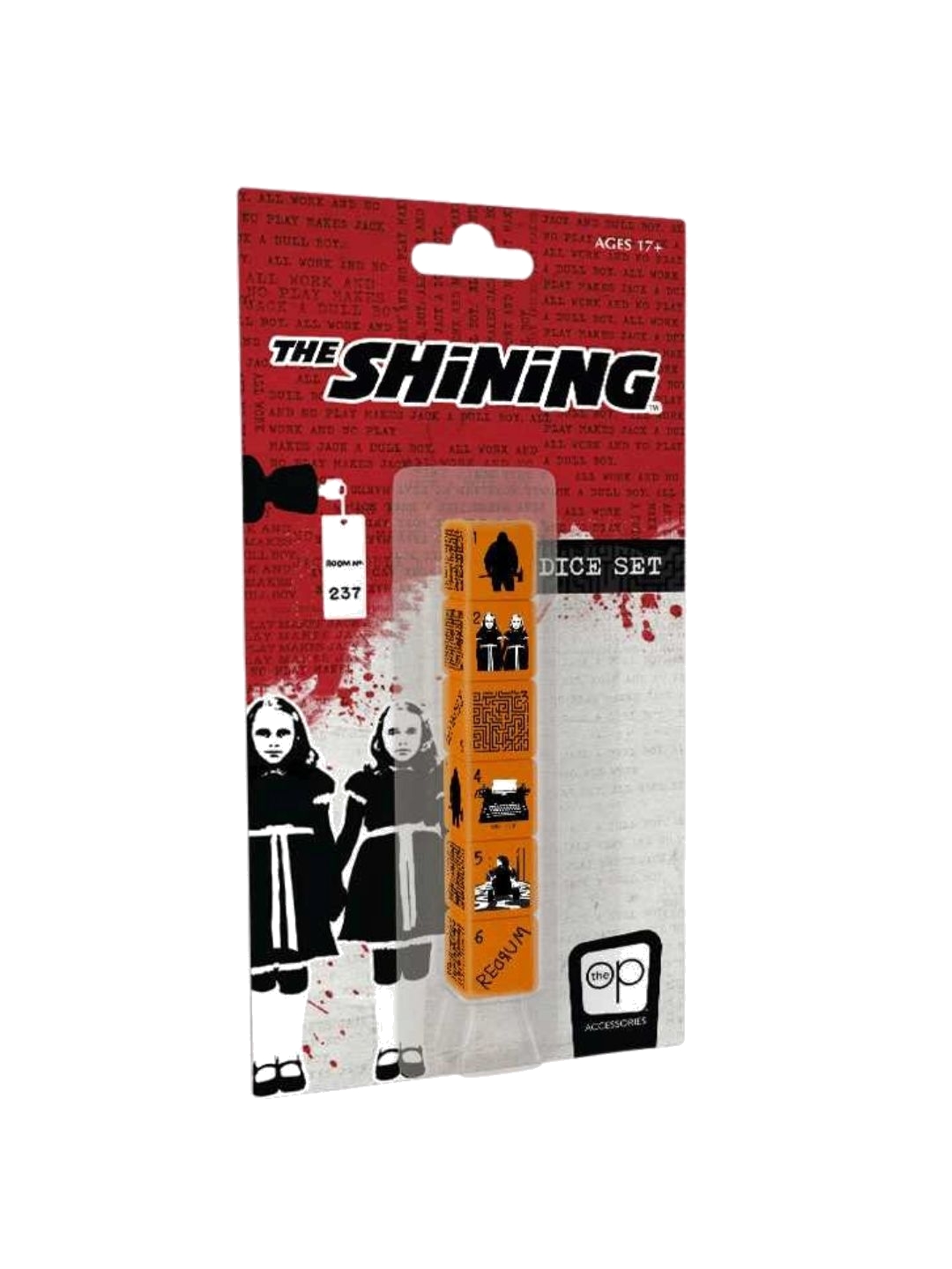 Το The Shining Dice Set φέρνει τις ανατριχιαστικές εικόνες της ταινίας The Shining στο επόμενο παιχνίδι σας. Το σετ περιλαμβάνει ζάρια 6 όψεων με σιλουέτες από την κλασική ταινία τρόμου, όπως ο Jack με τσεκούρι, ο Danny, το REDRUM, η γραφομηχανή, το λαβύρινθο και τα δίδυμα Grady, σε ασπρόμαυρο σχέδιο. Ιδανικό για fans της ταινίας που θέλουν να προσθέσουν τρομακτική αισθητική και συλλεκτική αξία στα επιτραπέζια παιχνίδια τους.