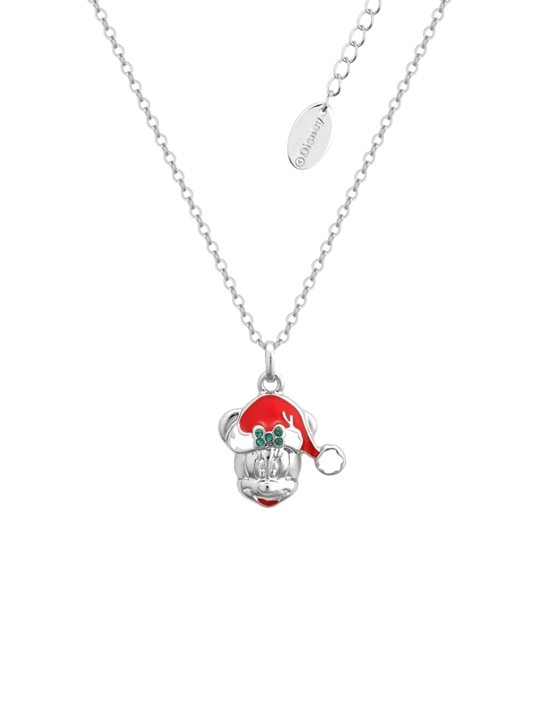 Disney Festive Christmas White Gold-Plated Minnie Mouse Holiday Necklace