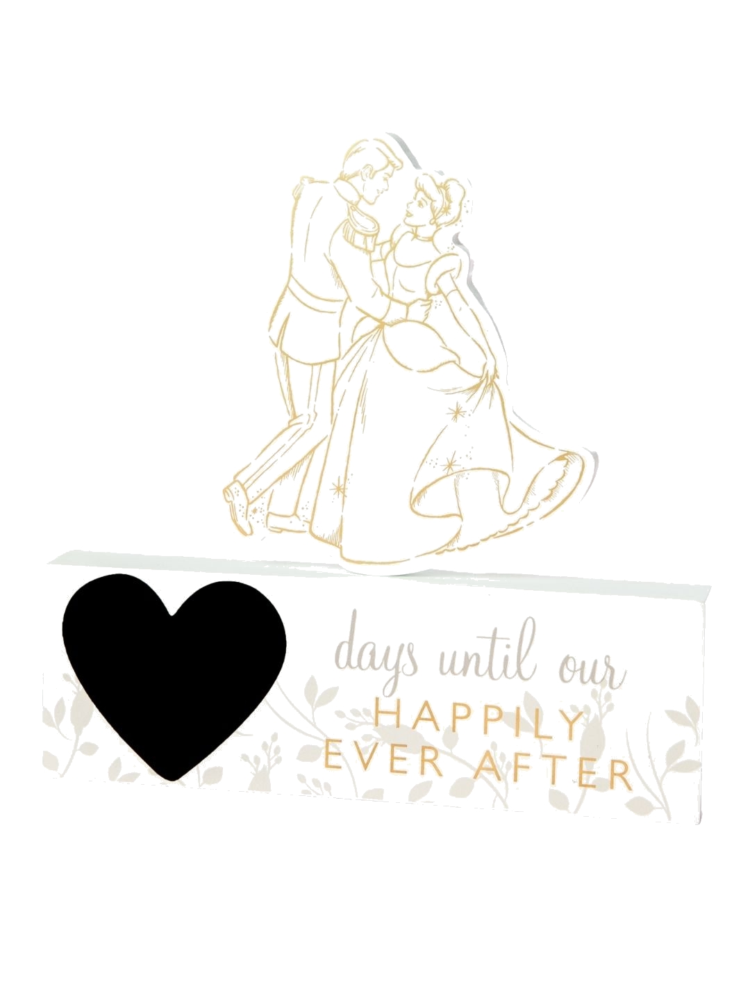 Μετρήστε αντίστροφα για την παραμυθένια ημέρα του Γάμου σας με αυτή την "Σταχτοπούτα & Πρίγκηπας" πλακέτα από τη Disney, από τη συλλογή "Happily Ever After". Αυτή η ξύλινη πλακέτα με το ρομαντικό σχέδιο θα προσθέσει μια μαγευτική ατμόσφαιρα στην προετοιμασία του γάμου σας.
