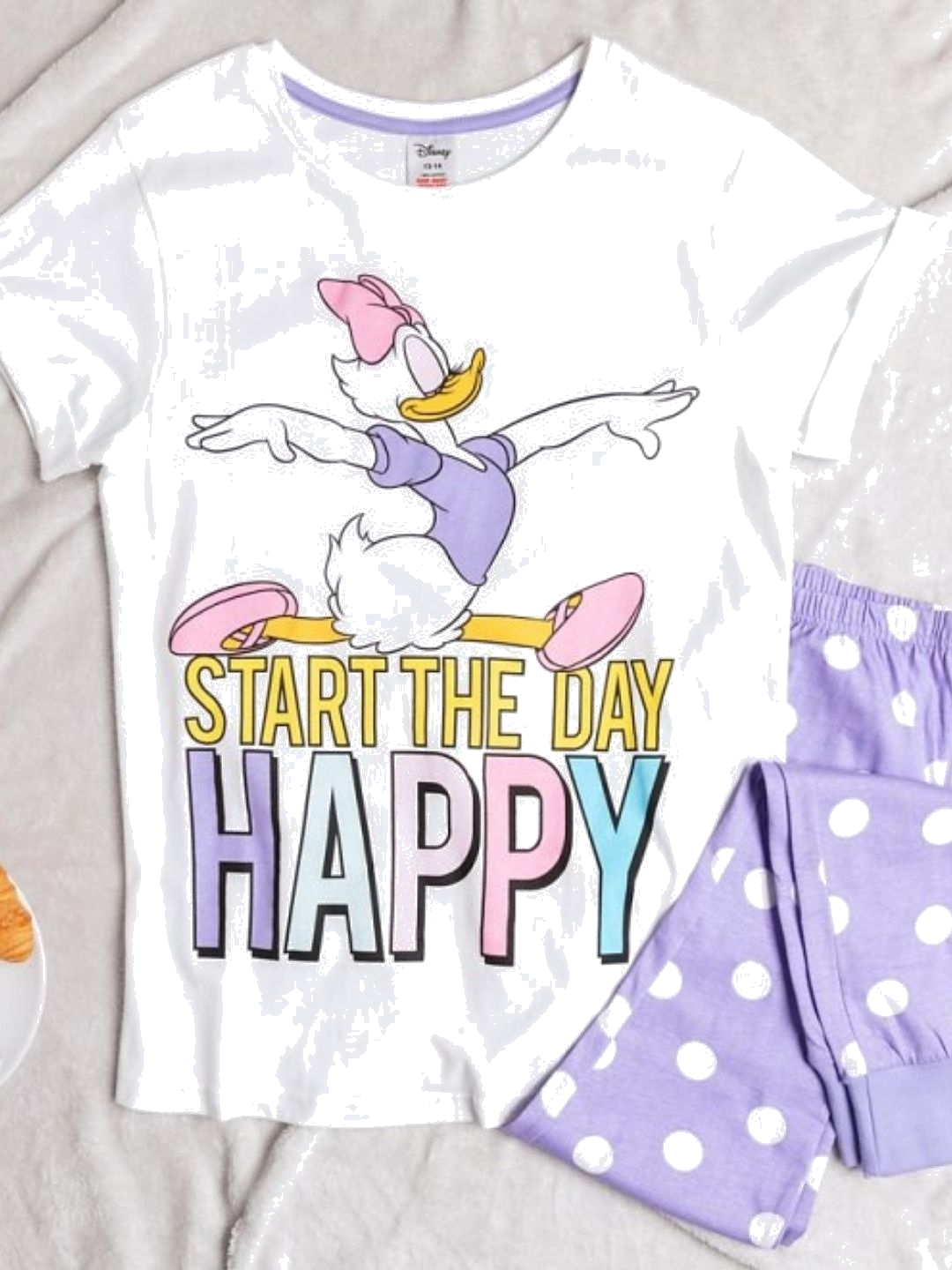 Με αυτό το υπέροχο σετ πιτζάμες Disney που απεικονίζουν την Daisy Duck θα καταφέρεις να δείχνεις εκθαμβωτική ακόμα και όταν κοιμάσαι! - Επίσημο προϊόν - 100% cotton - Imported
