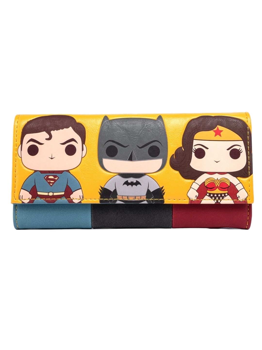 Αυτό το υπέροχο πορτοφόλι της Loungefly απεικονίζει τρεις από τους πιο διάσημους και αγαπημένους ήρωες της DC Comics, τον Batman, τον Superman και την Wonder Woman! - Επίσημο προϊόν - 20 x 10 εκ. - Vegan Leather - Imported