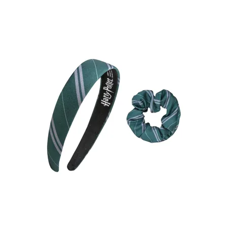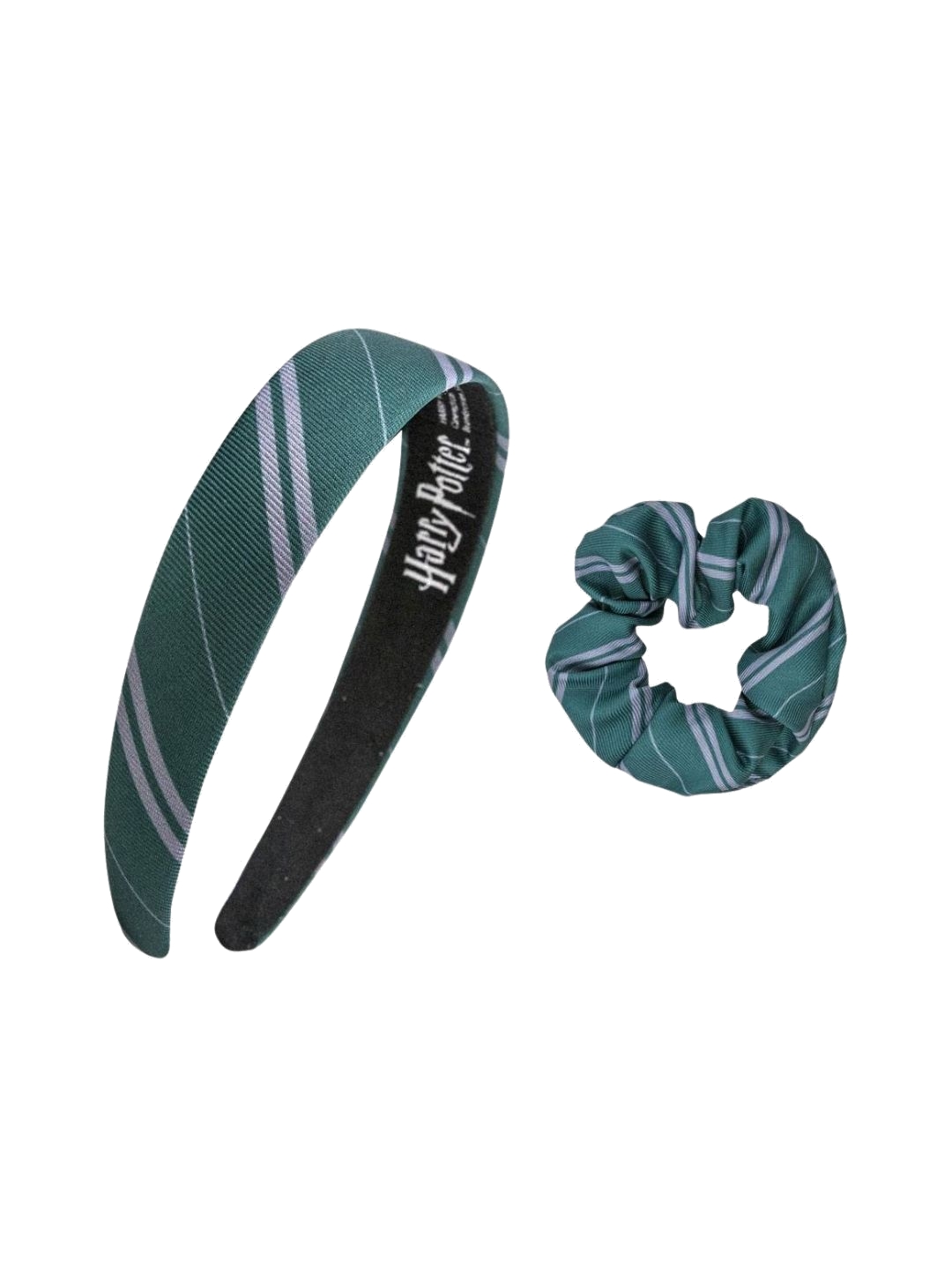 Αναδείξτε τον κοιτώνα του Slytherin με αυτό το υπέροχο σετ αξεσουάρ μαλλιών από τον κόσμο του Harry Potter! Είτε πρόκειται για καθημερινή εμφάνιση είτε για μαγική μεταμόρφωση, αυτό το σετ είναι η ιδανική προσθήκη για κάθε fan της μαγείας. Περιλαμβάνει μια κομψή στέκα κεφαλής και ένα scrunchie, διακοσμημένα με τα χαρακτηριστικά χρώματα και σύμβολα του Slytherin.
