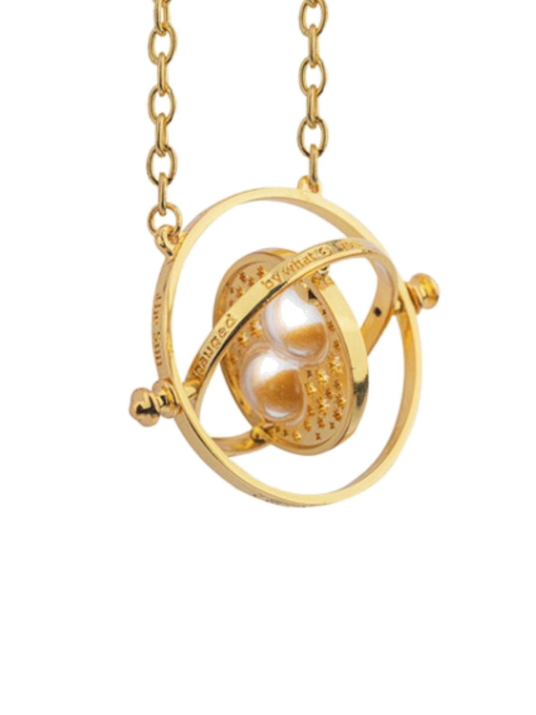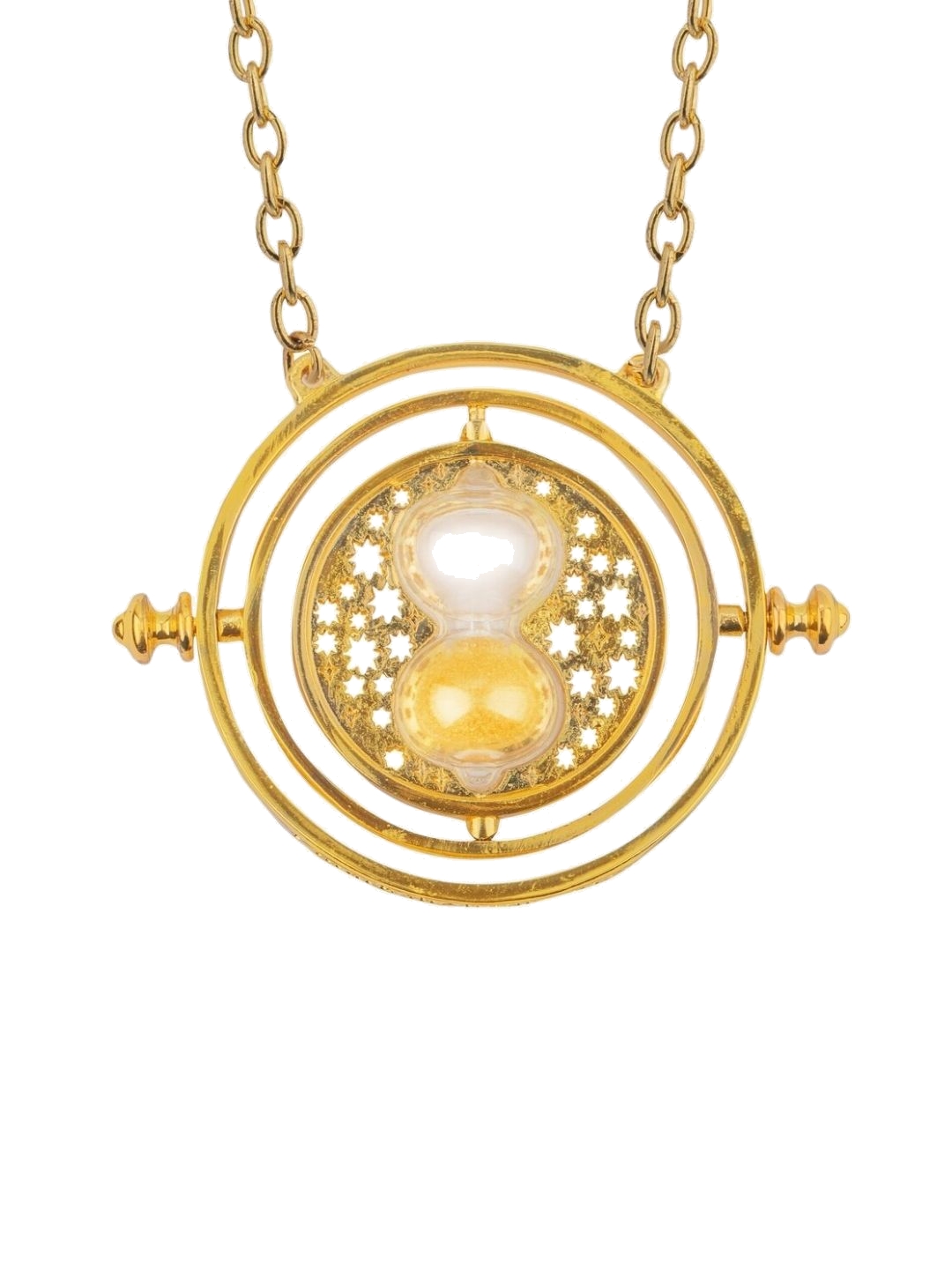 Αυθεντική αναπαράσταση του Time Turner που φορούσε η Hermione Granger στην ταινία, αυτό το Time-Turner είναι ένα απαραίτητο αντικείμενο για κάθε φαν της σειράς! Η μινιατούρα κλεψύδρας περιλαμβάνει χρυσή άμμο που κυλάει, προσφέροντας μια μοναδική μαγική αίσθηση.