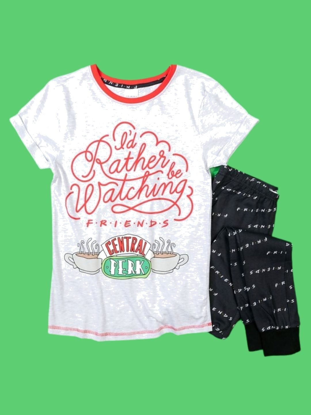 Όλοι οι φαν της αγαπημένης σειράς Friends θα "τρελαθούν" με αυτό το υπέροχο σετ πιτζάμες και σίγουρα θα απολαύσουν ακόμη περισσότερο τα επόμενα επεισόδια που θα παρακολουθήσουν! - Επίσημο προϊόν - 100% Cotton - Imported