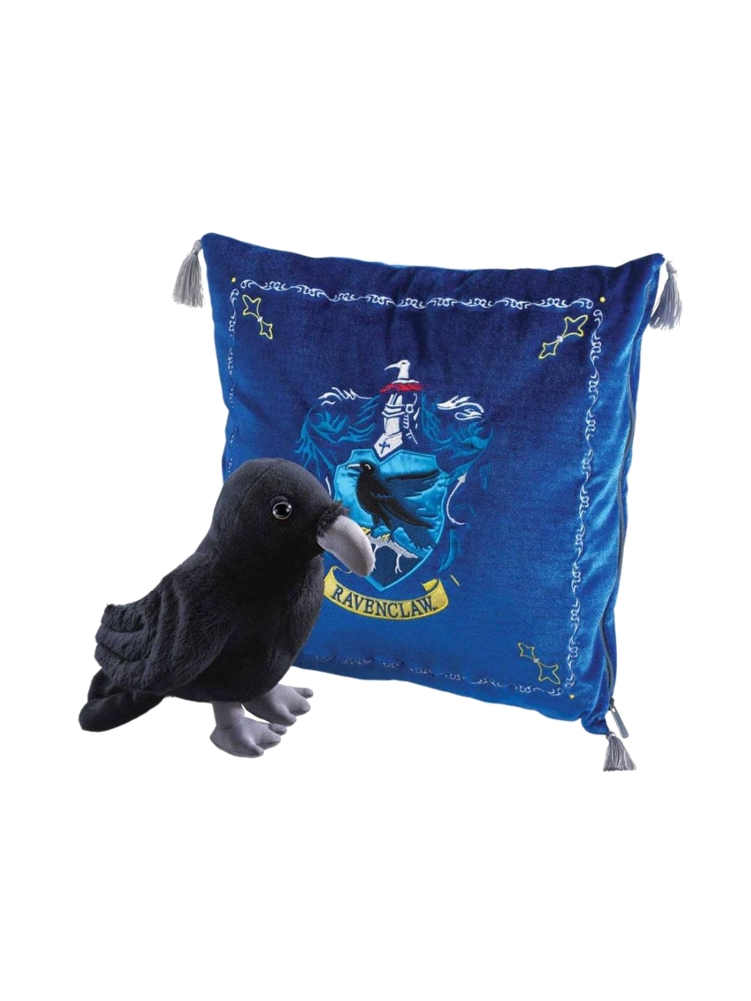 Το Harry Potter House Mascot Cushion with Plush Figure Ravenclaw είναι ένα επίσημα αδειοδοτημένο και εξαιρετικά εντυπωσιακό μαξιλάρι της Noble Collection, που φέρει το οικόσημο του Ravenclaw και συνοδεύεται από τη λούτρινη μασκότ του κοιτώνα σε μια όμορφη, γλυκιά και διασκεδαστική μορφή. Με άνετες διαστάσεις και υψηλής ποιότητας υλικά, αποτελεί ιδανική επιλογή για συλλέκτες, fans του Wizarding World ή για όσους θέλουν να χαρίσουν λίγη μαγεία στον χώρο τους.