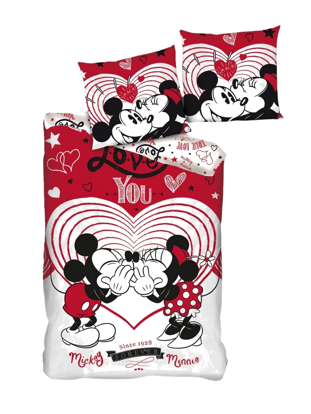 Σετ κλινοσκεπασμάτων που περιλαμβάνει παπλωματοθήκη και μαξιλαροθήκη, εμπνευσμένο από την αγαπημένη σειρά Disney και τους χαρακτήρες Mickey και Minnie Mouse. Ιδανικό για μονό κρεβάτι, το σετ προσφέρει άνεση και στυλ με μια αγαπημένη εικόνα αγάπης.