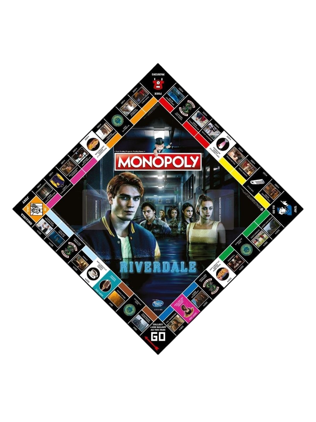 Βυθιστείτε στην απατηλή ειδυλλιακή ατμόσφαιρα του Riverdale με αυτή τη συναρπαστική νέα έκδοση του κλασικού παιχνιδιού Monopoly. Παίξτε ως Veronica, Archie, Jughead, Betty, Cheryl ή Pop και αγοράστε, πουλήστε και ανταλλάξτε ιδιοκτησίες για να κυριαρχήσετε στην πόλη που φαίνεται ακίνδυνη. Χρησιμοποιήστε στρατηγική για να αποφύγετε τον κίνδυνο και να επιβιώσετε. Το παιχνίδι περιλαμβάνει αυθεντικές τοποθεσίες από τη βραβευμένη σειρά, όπως το Twilight Drive-In, η Sacred Heart Church, το σπίτι των Andrews και το Five Seasons Hotel. Με ειδικά πιόνια όπως η κιθάρα του Archie και τα μαργαριτάρια της Veronica, ζωντανέψτε κλασικές σκηνές ενώ διεκδικείτε αντικείμενα όπως το milkshake του Pop, το τζάκετ του Jason και το USB stick. Οι κάρτες Riverdale High και South Side Serpents μπορούν να γυρίσουν τα πράγματα υπέρ σας ή να σας οδηγήσουν στη φυλακή. Εάν αποκτήσετε την κάρτα Get Out of Jail Free, ίσως μπορέσετε να αγοράσετε την ελευθερία σας, διευρύνοντας την αυτοκρατορία σας και καταστρέφοντας τους αντιπάλους σας.