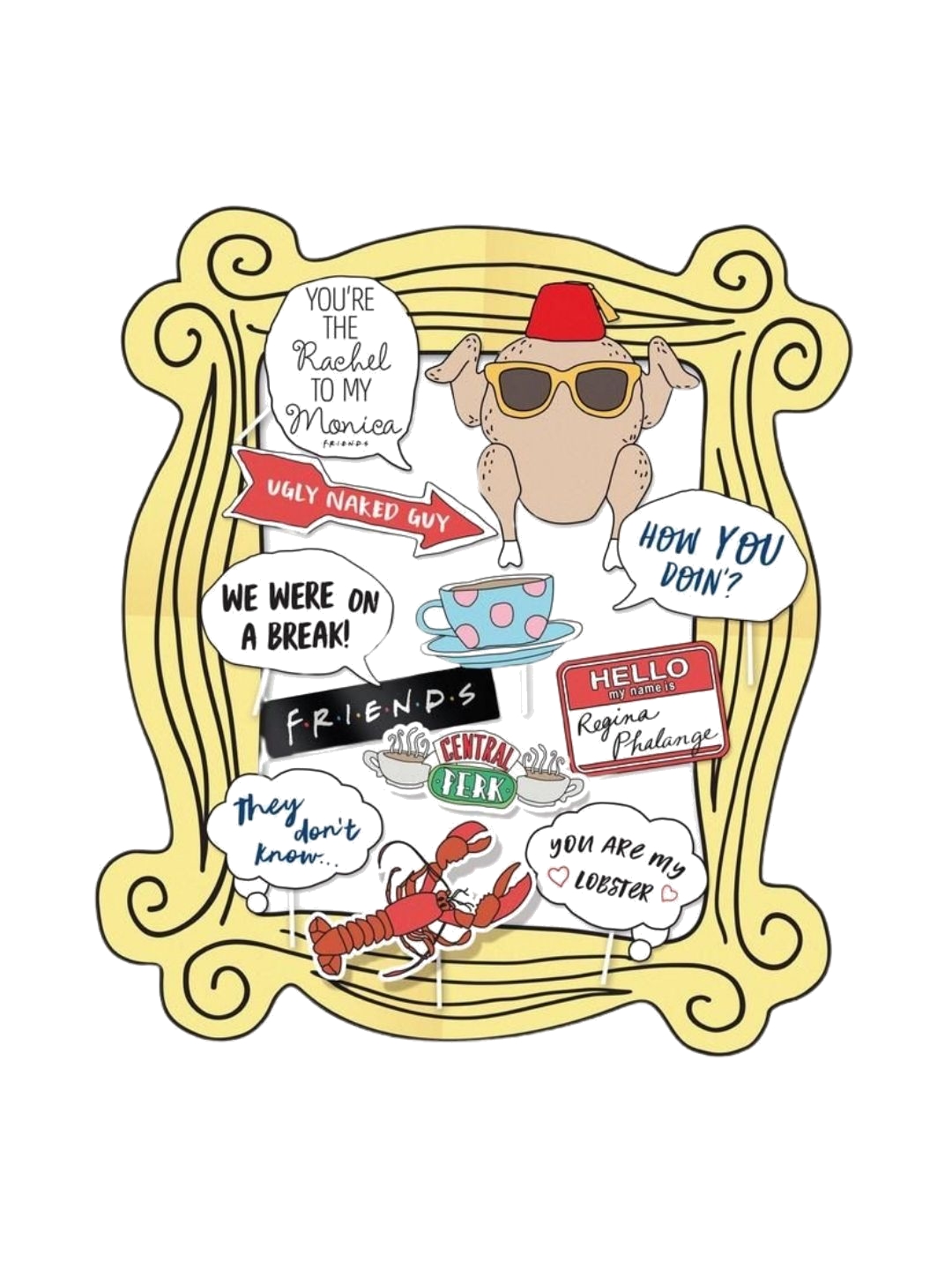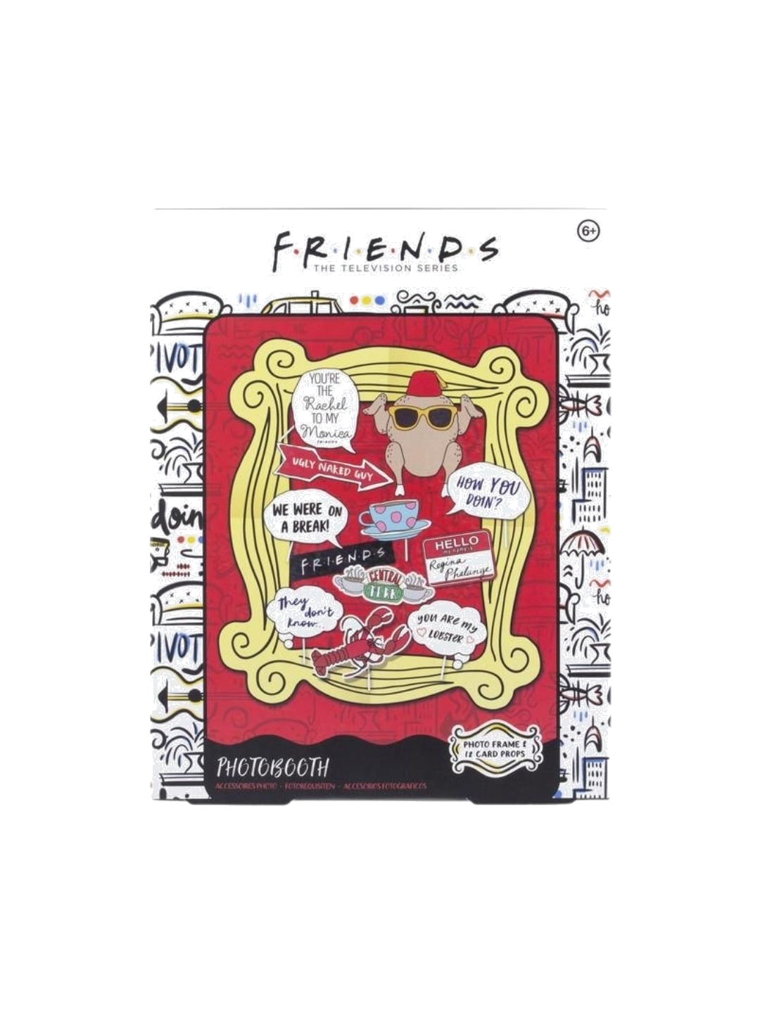 Αν έχεις μια θεματική βραδιά για την αγαπημένη σου τηλεοπτική σειρά Friends, τότε αυτό το Photo booth είναι ιδανικό για εσένα και τους φίλους σου! Το photo booth περιέχει 12 από τις πιο χαρακτηριστικές φράσεις και σύμβολα της σειράς καθώς και το μοναδικό κάδρο της Monica με διαστάσεις 87 x 99 εκ. για να βγάλεις φωτογραφίες μέχρι και να διακοσμήσεις το δωμάτιο σου! - Επίσημο προϊόν - Imported