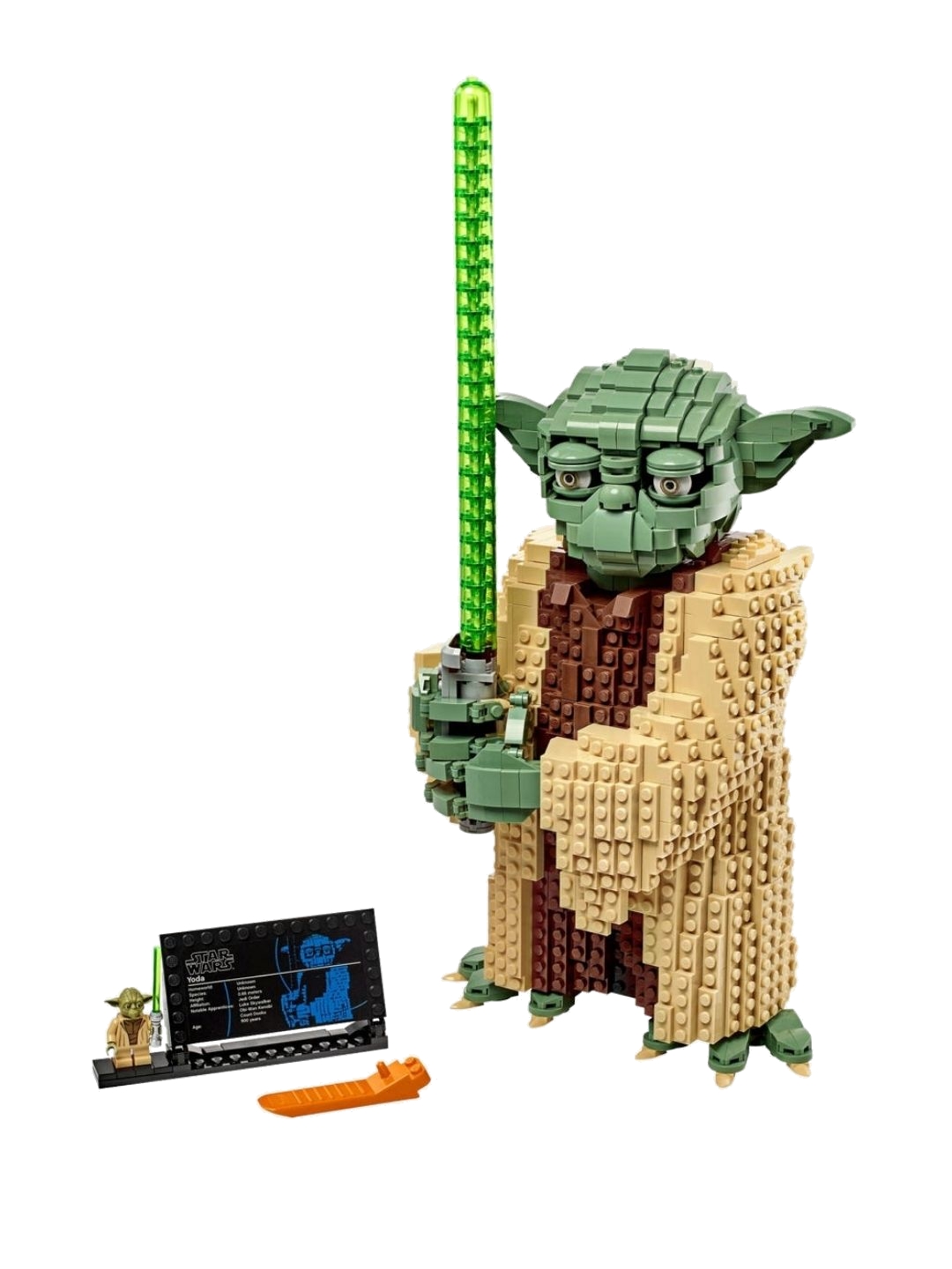 Αναπαράστησε συναρπαστικές μάχες Star Wars™ με τον κατασκευάσιμο Δάσκαλο των Τζεντάι Γιόντα! Μπορεί να είναι φτιαγμένος από τουβλάκια LEGO®, αλλά με το πανίσχυρο Φωτόσπαθό του, αυτή η μεγάλη LEGO φιγούρα του Γιόντα είναι υπολογίσιμη δύναμη. Κούνησε το κεφάλι, τα φρύδια και τα δάκτυλα χεριών και ποδιών για να πετύχεις την τέλεια πόζα του Δασκάλου των Τζεντάι! Αυτό το σετ περιλαμβάνει επίσης βάση έκθεσης και μικρή μίνι φιγούρα Γιόντα και Φωτόσπαθο.