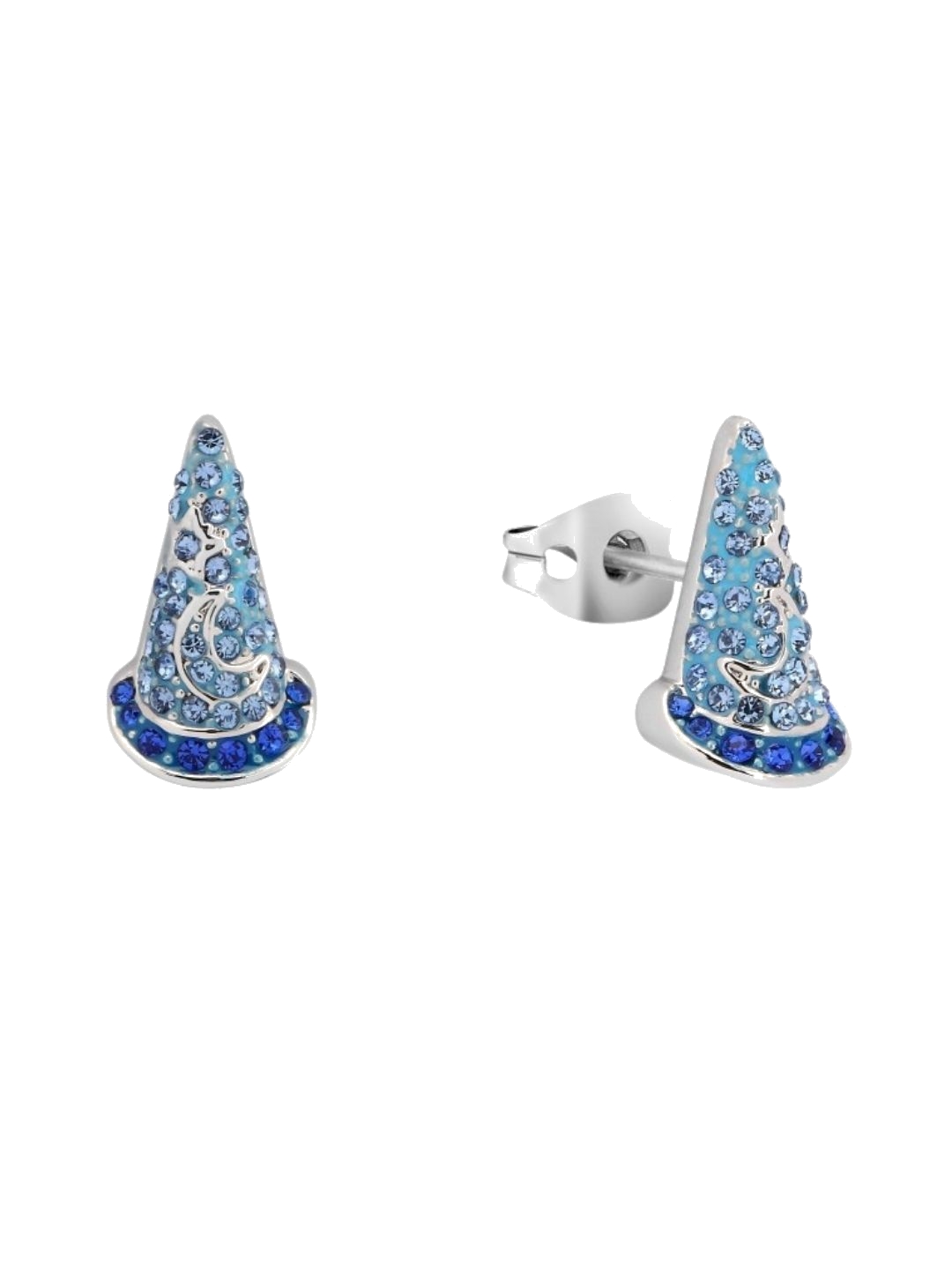 Disney Couture Fantasia Sorcerer's Apprentice Mickey White Gold-Plated Crystal Hat Stud Earrings
