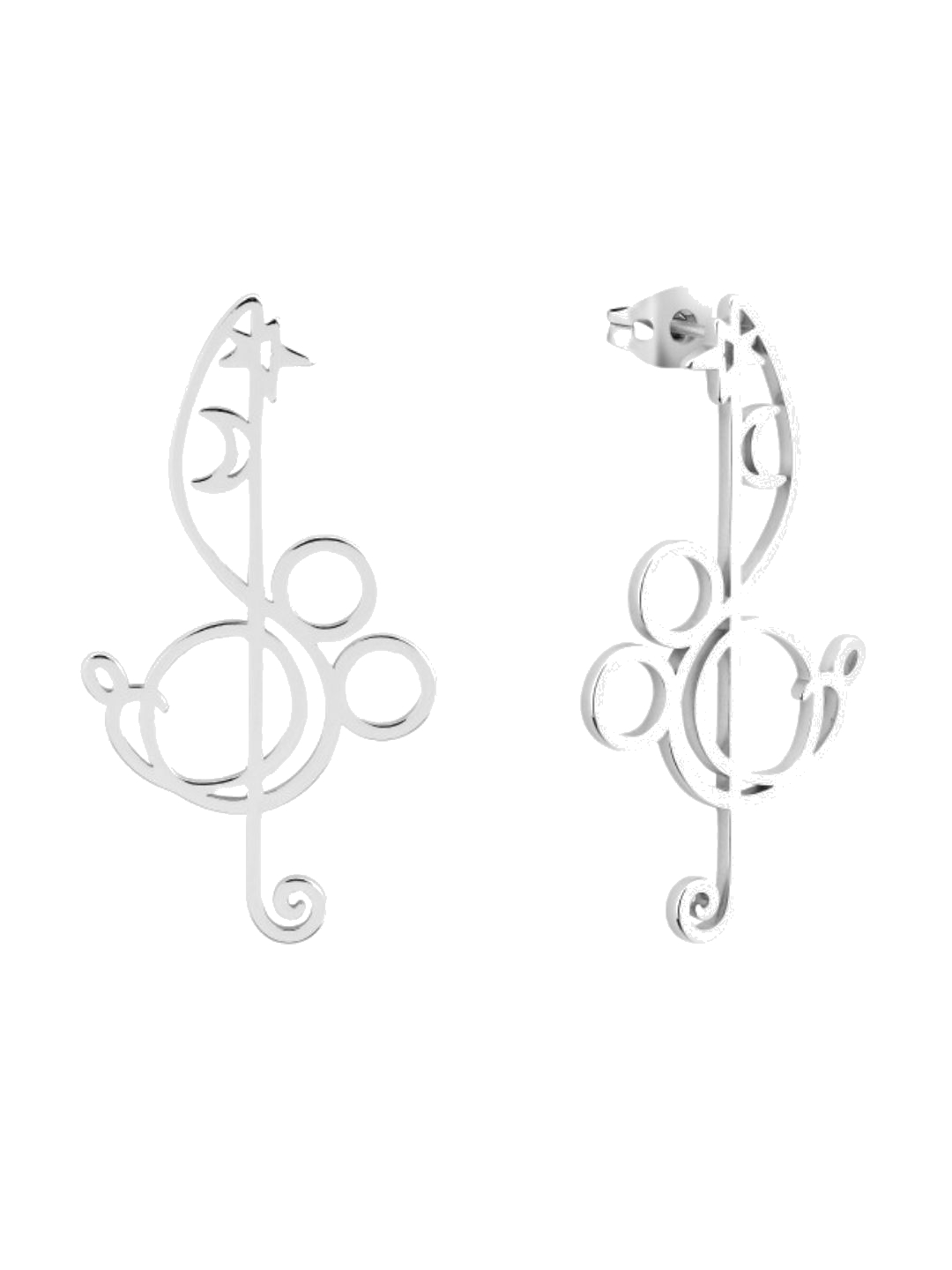 Disney Couture Fantasia Sorcerer's Apprentice Mickey White Gold-Plated Treble Clef Earrings