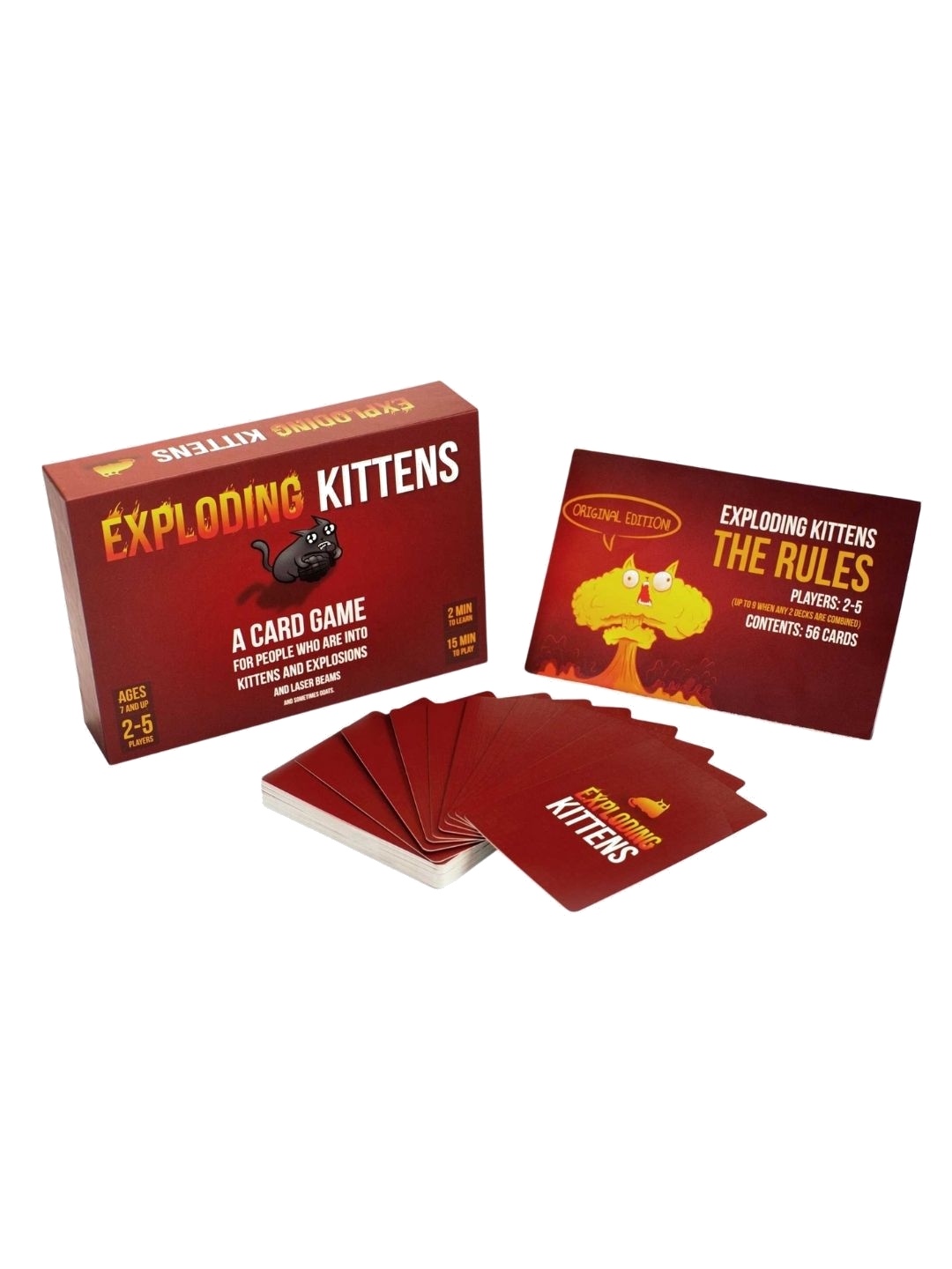 Σε αυτό το γρήγορο και ξεκαρδιστικό παιχνίδι με κάρτες Exploding Kittens, πρέπει ο κάθε παίκτης να παίρνει κάρτες μέχρι που κάποιος να πετύχει την κάρτα με την βόμβα και να χάσει! Το μόνο που μπορείς να κάνεις για να αποφύγεις την έκρηξη είναι να χρησιμοποιήσεις συγκεκριμένες κάρτες! - Όριο Ηλικίας 7+ - Ώρα Παιχνιδιού: 15 λεπτά - Παίκτες: 2-5 - Τύπος Παιχνιδιού Standalone - Υποκατηγορία Παιχνίδι με Κάρτες - Εκδότης Exploding Kittens - 11.4 x 4 x 16.2 εκ. - Αγγλική έκδοση - Imported