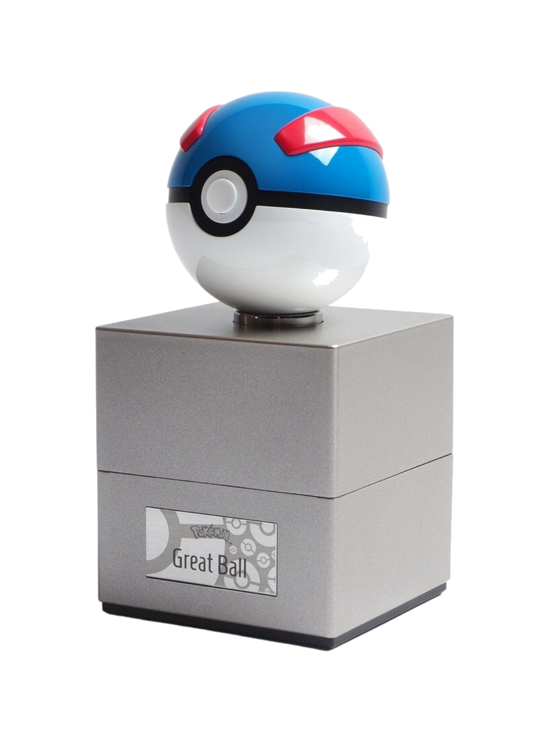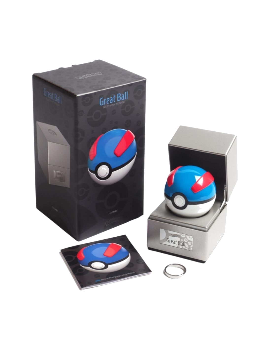 Gotta Catch' em all! Η ολοκαίνουρια μεταλλική Great Ball, η οποία τηρεί τις ακριβές διαστάσεις σύμφωνα με τις οδηγίες της Pokemon inc. και είναι ευαίσθητη στην αφή. Με το φωτεινό κουμπί και τη φωτεινή θήκη παρουσίασης, αυτό το Great Ball υπόσχεται να είναι μια όμορφη προσθήκη στην συλλογή κάθε Pokémon φαν. Κατά το άνοιγμα της θήκης η Great Ball ανασηκώνεται καθώς φωτίζεται με σκοπό να νιώσεις σαν ένας πραγματικός εκπαιδευτής Pokemon! - Επίσημο προϊόν - Υλικό: Die Cast - Replica Great Ball - Θήκη παρουσίασης - Δαχτυλίδι παρουσίασης από ανοξείδωτο ατσάλι - Εικονογραφημένο εγχειρίδιο - Περιλαμβάνονται μπαταρίες - By The Wand Company - Imported