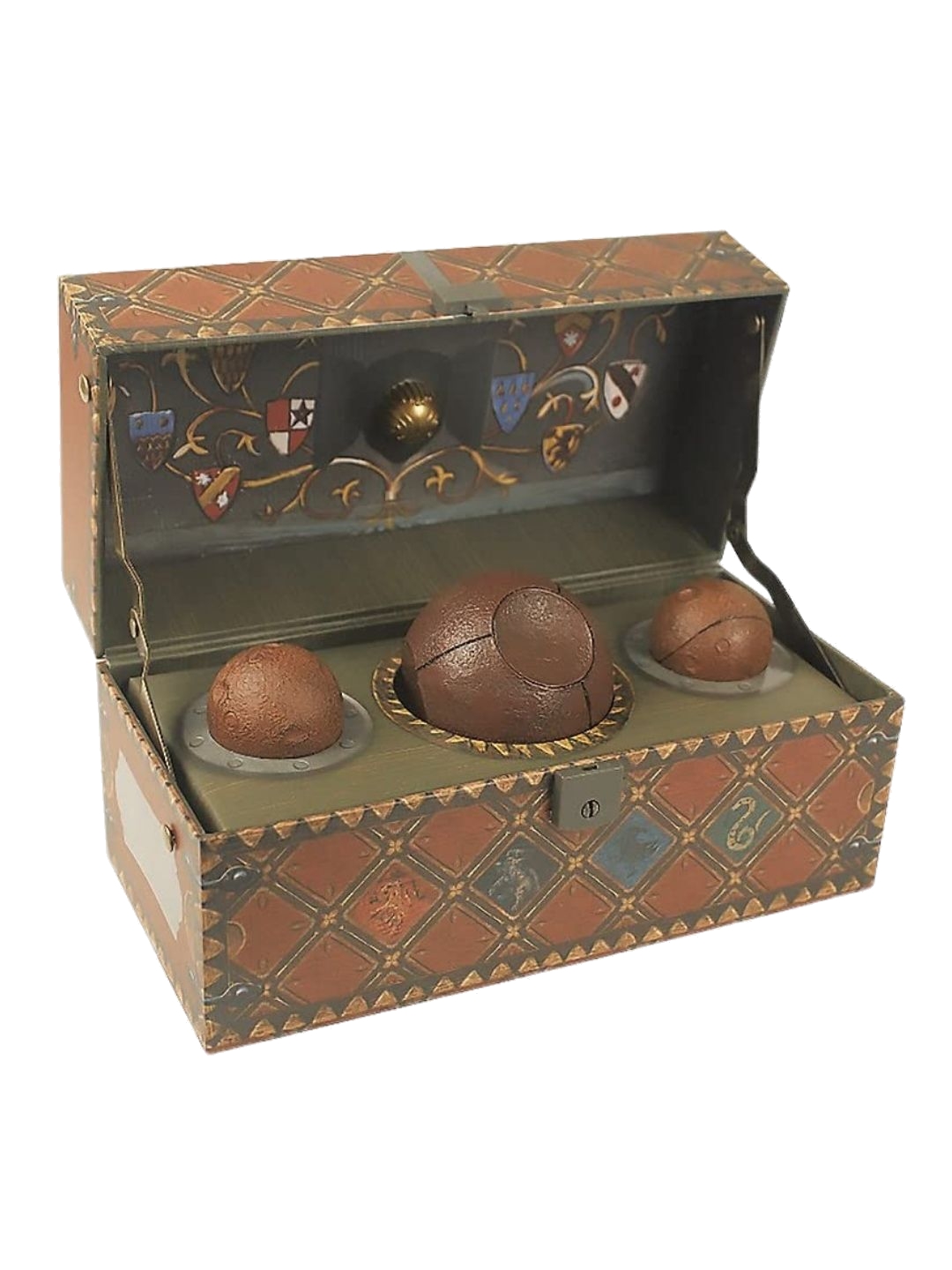 Τώρα θα είσαι από τους λίγους φαν που θα έχεις στην κατοχή σου τις μπάλες από το πρωτάθλημα του Quidditch! Το συλλεκτικό κουτί είναι ρέπλικα από το αυθεντικό κουτί της ταινίας του Harry Potter και περιέχει 2 Bludgers, 1 Quaffle, 1 Golden Snitch και μια glossy αφίσα Hogwarts Quidditch. Είναι ένα υπέροχο δώρο για κάθε φαν του Harry Potter! - Επίσημο προϊόν - Διαστάσεις κουτιού 11 εκ. x 22.5 εκ. x 11.5 εκ. - Διαστάσεις αφίσας 40 εκ. x 60 εκ. - Η Golden Snitch δεν μπορεί να αφαιρεθεί από την θήκη - Imported