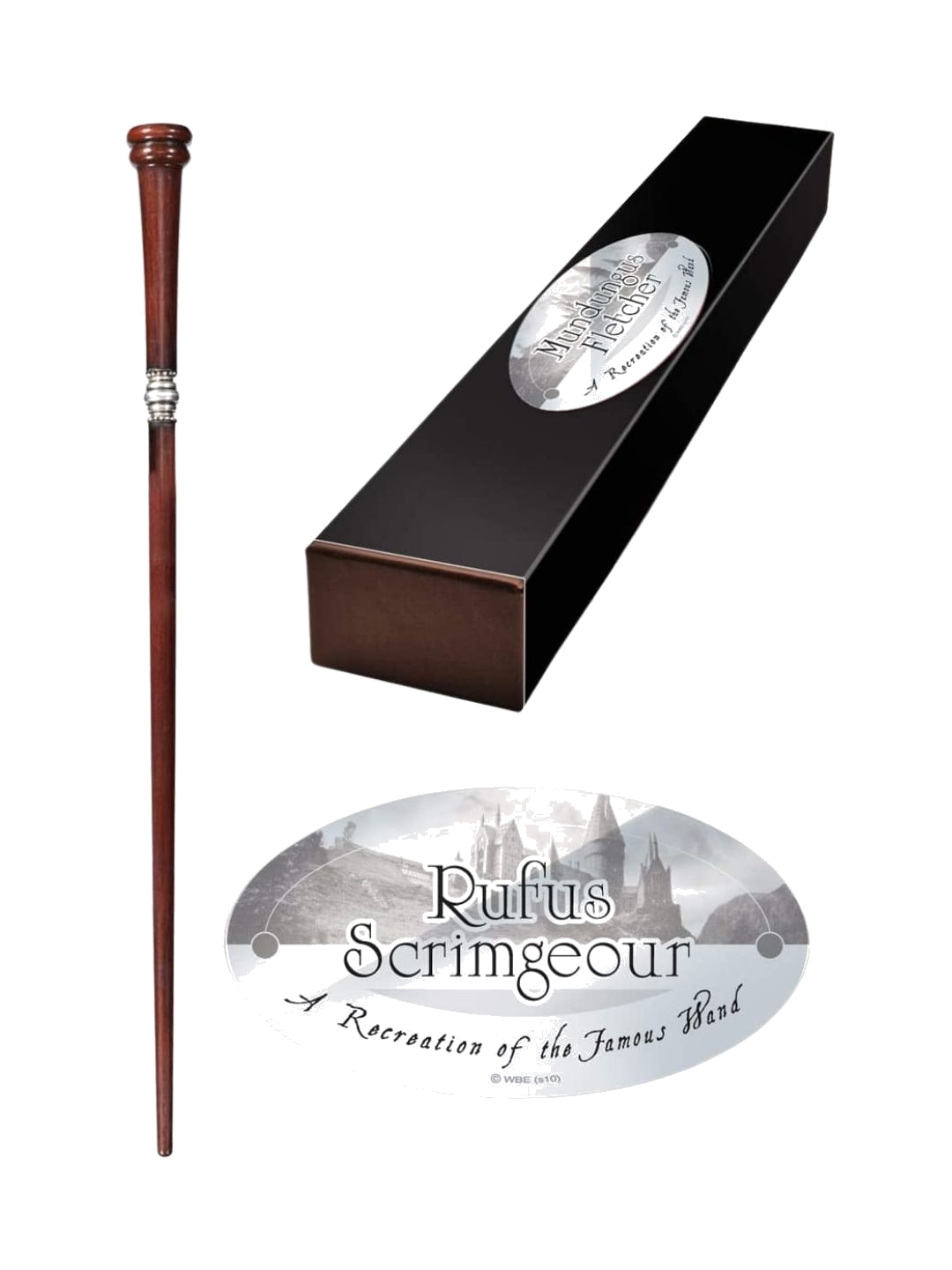 Αυτό είναι το μαγικό ραβδί του Rufus Scrimgeour, του υπουργού μαγείας. Το συλλεκτικό κουτί περιέχει ένα clip με το όνομα του μάγου. Το ραβδί έχει μήκος περίπου 38 εκ. και είναι τέλειο για τη συλλογή κάθε φαν!