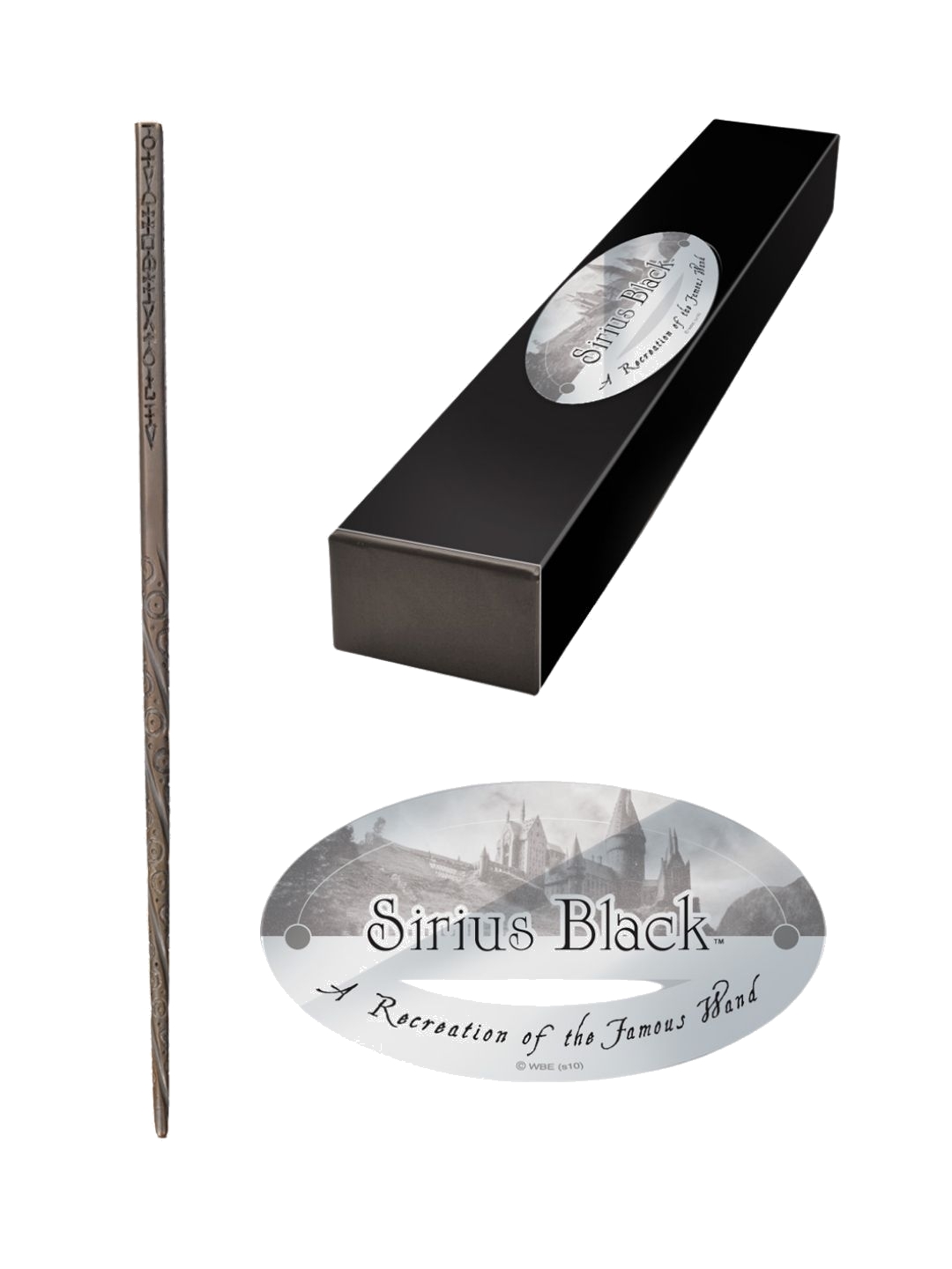 Το μαγικό ραβδί του Σίριους Μπλακ, νονός του Χάρι Πότερ, μέλος του Τάγματος του Φοίνικα και των Marauders, είναι ένα συλλεκτικό αντικείμενο. Το κουτί περιλαμβάνει και καρτελάκι με το όνομα. Το ραβδί έχει μήκος περίπου 39 εκ.