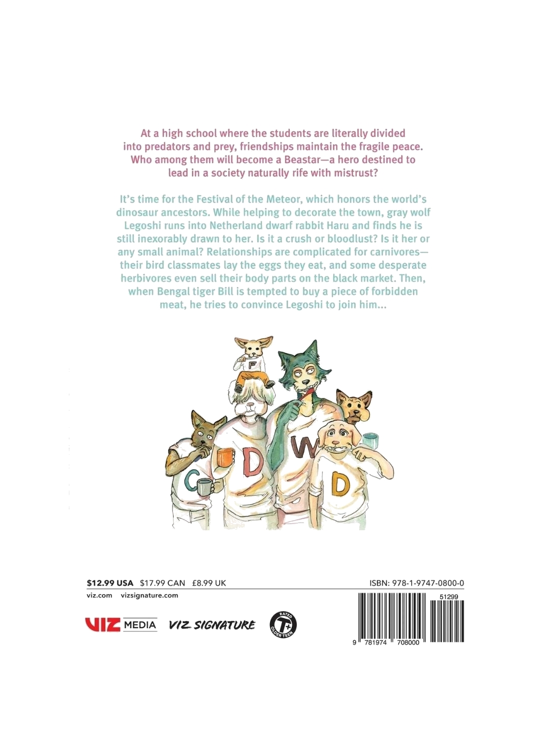 To Volume 3 της διάσημης σειράς manga, Beastars! Στο σχολείο, αντί για αστείους και nerds, οι μαθητές έχουν χωριστεί σε αρπακτικά και θυράματα. Σε ένα σχολείο που στην κυριολεξία οι μαθητές είναι χωρισμένοι, οι προσωπικές τους σχέσεις είναι αυτές που κρατούν την ειρήνη και την ισορροπία μεταξύ τους. Ποιός από όλους είναι γεννημένος να γίνει ένας Beastar, που θα είναι πρότυπο και ένας αρχηγός για όλους τους υπόλοιπους; "It's time for the Festival of the Meteor, a time when the animals honor their extinct dinosaur ancestors. Wolf Legoshi is still inexorably attracted to dwarf rabbit Haru. Is it a crush or bloodlust? Is it her or any small animal? Relationships are complicated for carnivores. Their bird friends lay and sell the eggs they eat, and some desperate herbivores even sell their body parts on the black market. Tiger Bill is tempted to buy a piece and invites Legoshi to indulge with him. But eating meat is highly addictive..." - Paperback - Εκδότης Viz Media, Subs. of Shogakukan Inc - Συγγραφέας Paru Itagaki