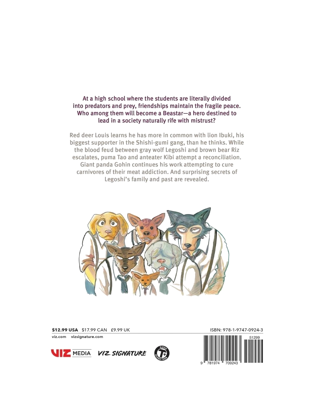 To Volume 10 της διάσημης σειράς manga, Beastars! Στο σχολείο, αντί για αστείους και nerds, οι μαθητές έχουν χωριστεί σε αρπακτικά και θυράματα. Σε ένα σχολείο που στην κυριολεξία οι μαθητές είναι χωρισμένοι, οι προσωπικές τους σχέσεις είναι αυτές που κρατούν την ειρήνη και την ισορροπία μεταξύ τους. Ποιός από όλους είναι γεννημένος να γίνει ένας Beastar, που θα είναι πρότυπο και ένας αρχηγός για όλους τους υπόλοιπους; "Red deer Louis learns he has more in common with lion Ibuki, his biggest supporter in the Shishi-gumi gang, than he thinks. While the blood feud between gray wolf Legoshi and brown bear Riz escalates, puma Tao and anteater Kibi attempt a reconciliation. Giant panda Gohin continues his work attempting to cure carnivores of their meat addiction. And surprising secrets of Legoshi's family and past are revealed. " - Paperback | 208 σελίδες - Εκδότης Viz Media, Subs. of Shogakukan Inc - Συγγραφέας Paru Itagaki - 146 x 210 x 15mm - Αγγλικά - Imported
