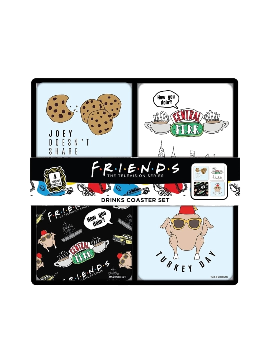 - Σετ χάρτινων σουβέρ με σχέδια εμπνευσμένα από τη θρυλική σειρά Friends