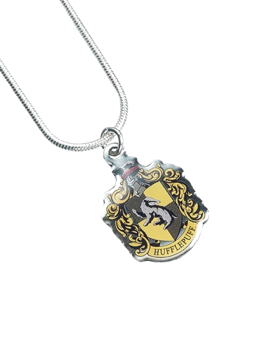 Επίσημο κολιέ με το σήμα του Hufflepuff από το Harry Potter. Το μενταγιόν απεικονίζει το διάσημο οικόσημο του Hufflepuff, του θρυλικού κοιτώνα που ίδρυσε η Helga Hufflepuff.