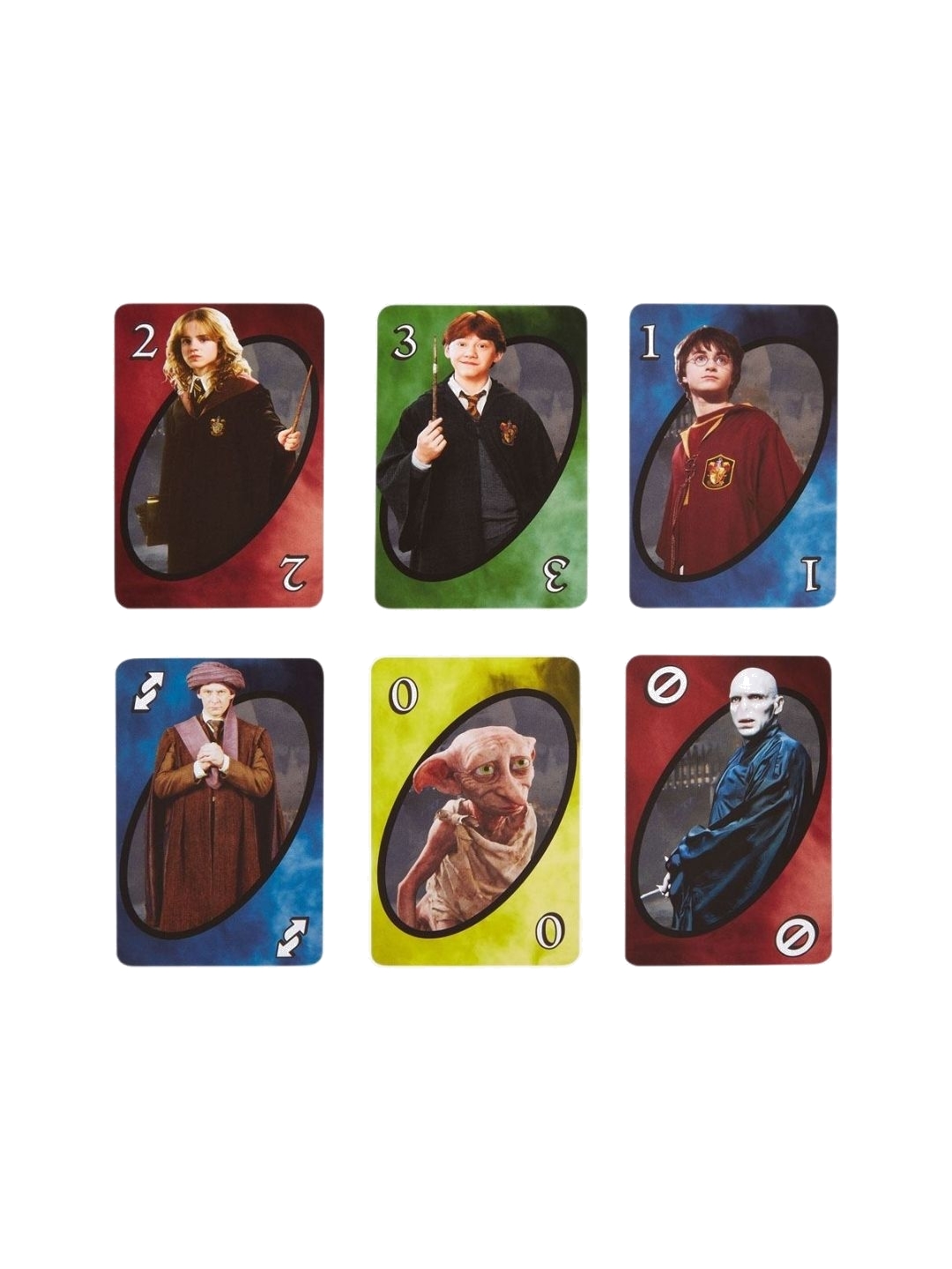 Το UNO είναι το διασκεδαστικό και γρήγορο παιχνίδι που όλοι αγαπάμε, μόνο που αυτή τη φορά απεικονίζει τους αγαπημένους μας χαρακτήρες από τις ταινίες Harry Potter! Ιδανικό για οικογένειες και φίλους, προσφέρει ατελείωτες ώρες διασκέδασης με την μαγεία του κόσμου του Hogwarts.