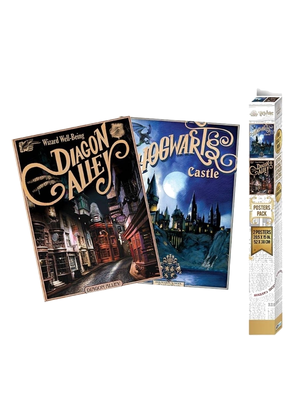 Harry Potter Set Of 2 Chibi Posters Retro Hogwarts and Diagon Alley