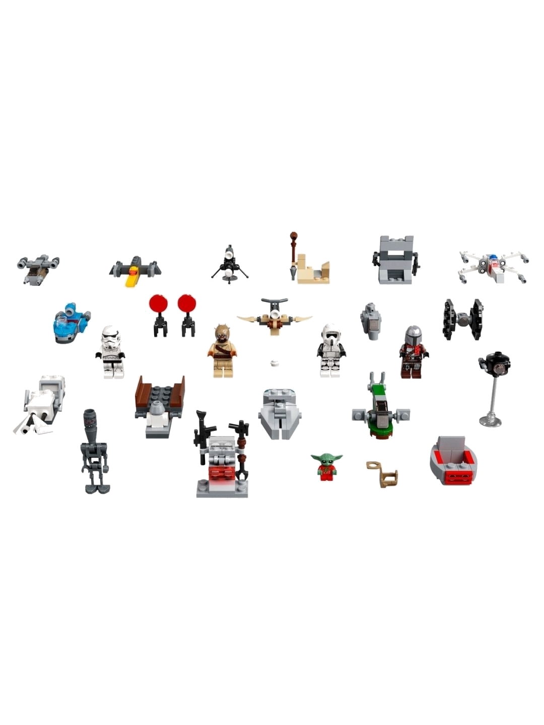 Δώστε στους φαν του Star Wars: The Mandalorian μια υπέροχη καθημερινή έκπληξη μέχρι τα Χριστούγεννα με το LEGO® Star Wars™ Advent Calendar 2021 (75307). Πίσω από κάθε μία από τις 24 πόρτες βρίσκεται μια μίνιφιγούρα LEGO, μια φιγούρα LEGO, ένα κατασκευάσιμο όχημα, όπλο ή αξεσουάρ, όλα εμπνευσμένα από το Star Wars: The Mandalorian Season 2. Μικρές κατασκευές, μέγιστη διασκέδαση Υπάρχουν 7 μίνιφιγούρες/φιγούρες/ρομπότ LEGO σε αυτό το εορταστικό ημερολόγιο: The Mandalorian και το Child (Grogu), γνωστό και ως Baby Yoda, και οι δύο με εορταστικές ενδυμασίες, καθώς και ένας Scout Trooper, Stormtrooper, Tusken Raider, IG-11 και IT-O Interrogator Droid. Τα παιδιά θα λατρέψουν επίσης να κατασκευάζουν και να παίζουν με μικρές κατασκευές όπως το Razor Crest, το TIE Fighter, το χιονοβόλο Tusken ballista, στόχους εκπαίδευσης και το hoverpram του Child. Δημιουργική διασκέδαση Από το 1999, η LEGO Group αναπαράγει διαστημόπλοια, οχήματα, τοποθεσίες και χαρακτήρες από το Star Wars. Τα σετ κατασκευής LEGO Star Wars είναι εξαιρετικά δημοφιλή και αποτελούν υπέροχες ιδέες για χριστουγεννιάτικα δώρα για δημιουργικά παιδιά και φαν όλων των ηλικιών.
