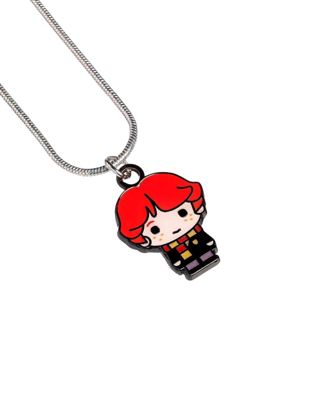 Γιόρτασε τη φιλία και τη μαγεία με αυτό το αξιολάτρευτο κολιέ που απεικονίζει τον Ron Weasley σε chibi/cartoοn στυλ! Ως ο πιο πιστός φίλος του Harry Potter, ο Ron έχει κερδίσει τις καρδιές των fans, και αυτό το κρεμαστό φέρνει την αγάπη για τον χαρακτήρα στο προσκήνιο με χαριτωμένο και ξεχωριστό τρόπο. Το μενταγιόν έχει ύψος 20mm και πλάτος 37mm, ενώ το ασημένιο κολιέ διαθέτει αλυσίδα snake plated που προσφέρει κομψότητα και άνεση. Έρχεται σε επίσημη συσκευασία Harry Potter, καθιστώντας το ιδανικό για συλλογή ή δώρο.