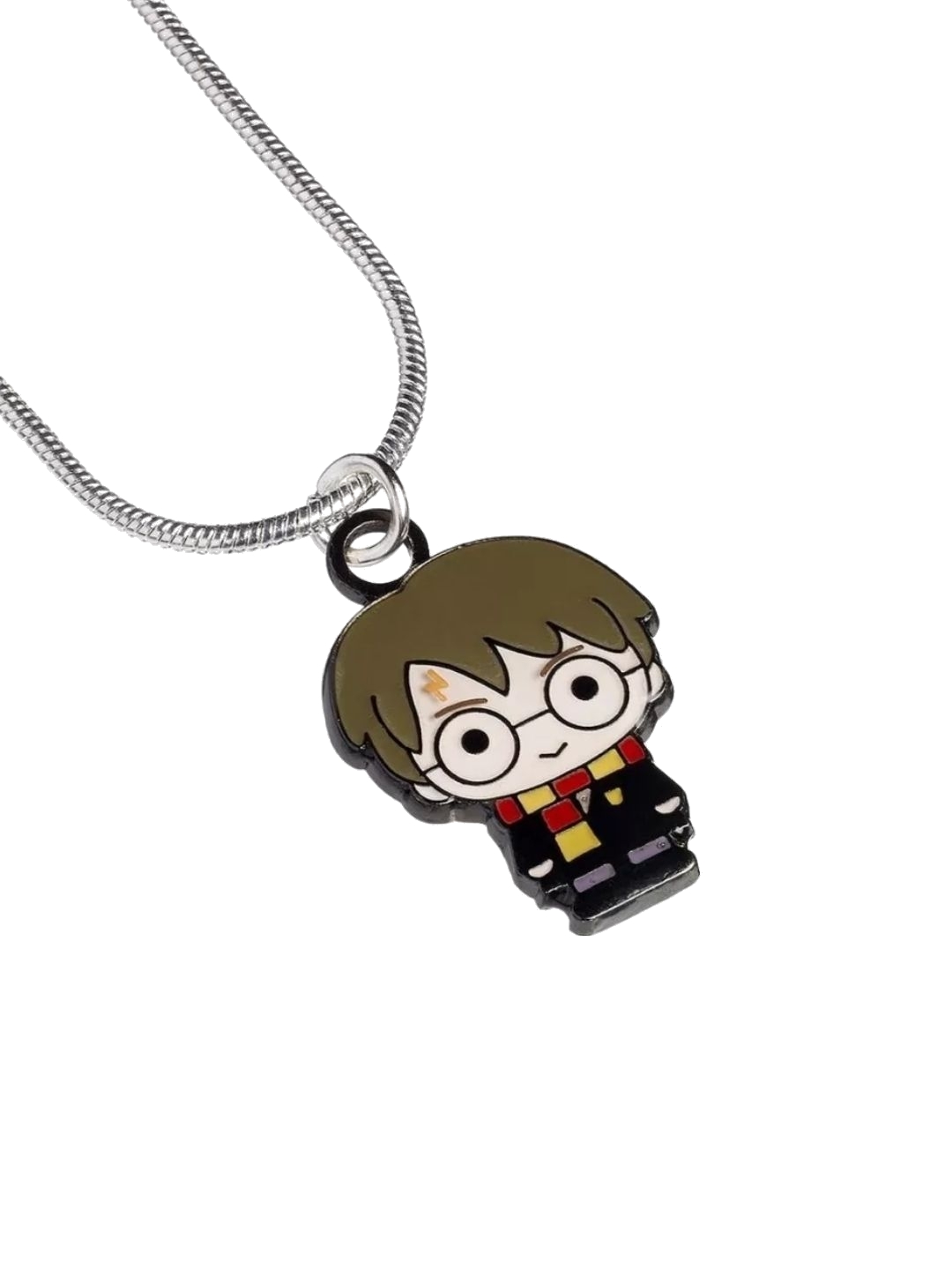 Ένα αξιολάτρευτο καρτουνίστικο σχέδιο Chibi του ίδιου του Harry Potter κοσμεί αυτό το μαγικό κολιέ, ιδανικό για κάθε φαν του Wizarding World! Το μενταγιόν, που αποτελεί μια μοναδική και παιχνιδιάρικη προσαρμογή του αγαπημένου ήρωα, έχει ύψος περίπου 20 χιλιοστά και πλάτος 37 χιλιοστά, καθιστώντας το ένα ευδιάκριτο αλλά κομψό αξεσουάρ. Η ασημένια αλυσίδα έχει μήκος 40 εκατοστά, με μια προέκταση 5 εκατοστών για να εξασφαλίσει την τέλεια εφαρμογή σε κάθε λαιμό. Αυτό το κολιέ έρχεται σε επίσημη συσκευασία με την επωνυμία Harry Potter, καθιστώντας το ένα υπέροχο δώρο ή μια φανταστική προσθήκη στη συλλογή σας!