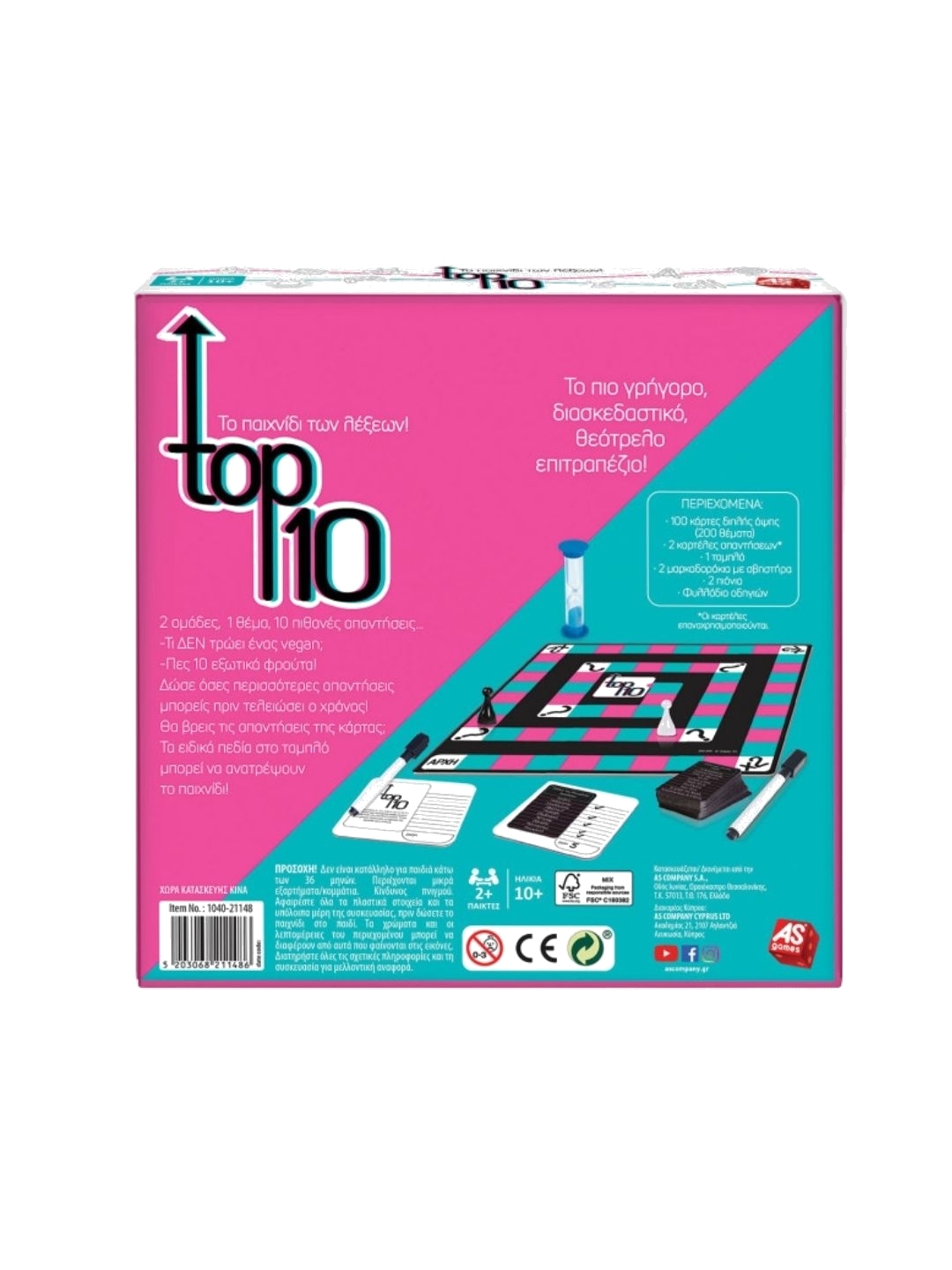 Το πιο γρήγορο, διασκεδαστικό και θεότρελο επιτραπέζιο! Δύο ομάδες, ένα θέμα και 10 πιθανές απαντήσεις — μπορείς να τα βρεις πριν τελειώσει ο χρόνος; Ρώτησε: Τι ΔΕΝ τρώει ένας vegan; Πες 10 εξωτικά φρούτα! Δώσε όσες περισσότερες απαντήσεις μπορείς πριν ο χρόνος τελειώσει! Τα ειδικά πεδία στο ταμπλό μπορεί να ανατρέψουν τα πάντα! Η ομάδα που θα φτάσει πρώτη στον τερματισμό κερδίζει! Ένα διασκεδαστικό παιχνίδι για οικογένειες και παρέες!