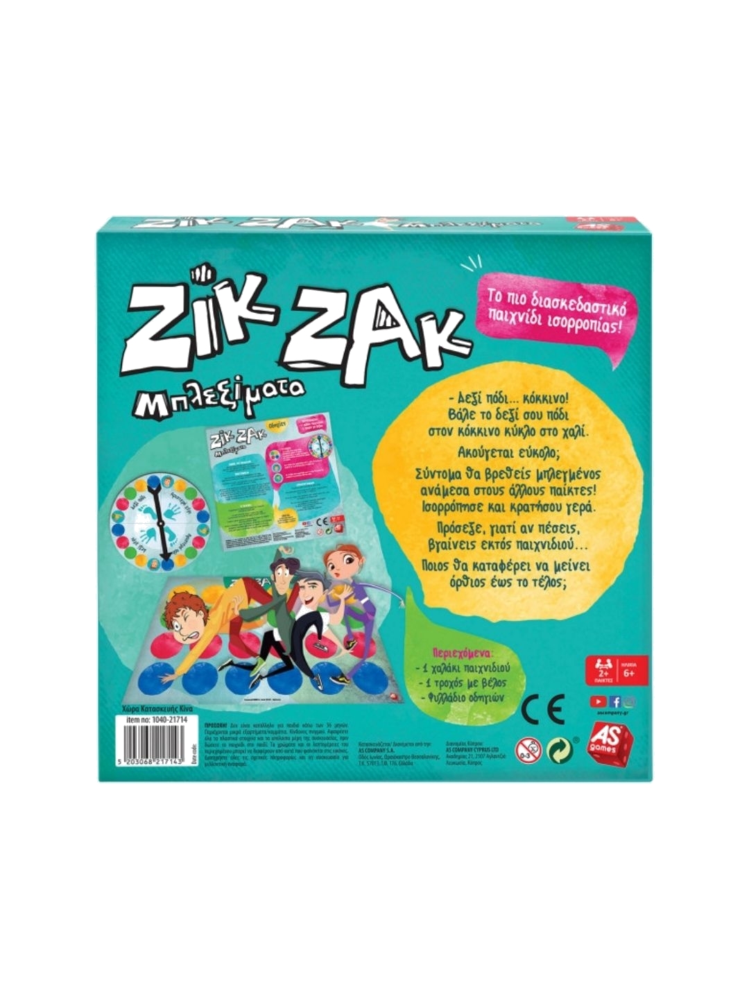 Με το Ζικ Ζακ Μπλεξίματα, η δράση και τα γέλια είναι ατελείωτα, ενώ οι παίκτες όλων των ηλικιών δοκιμάζουν την ισορροπία, την ευελιξία και τα αντανακλαστικά τους. Ιδανικό για οικογενειακά παιχνίδια ή πάρτι με φίλους.