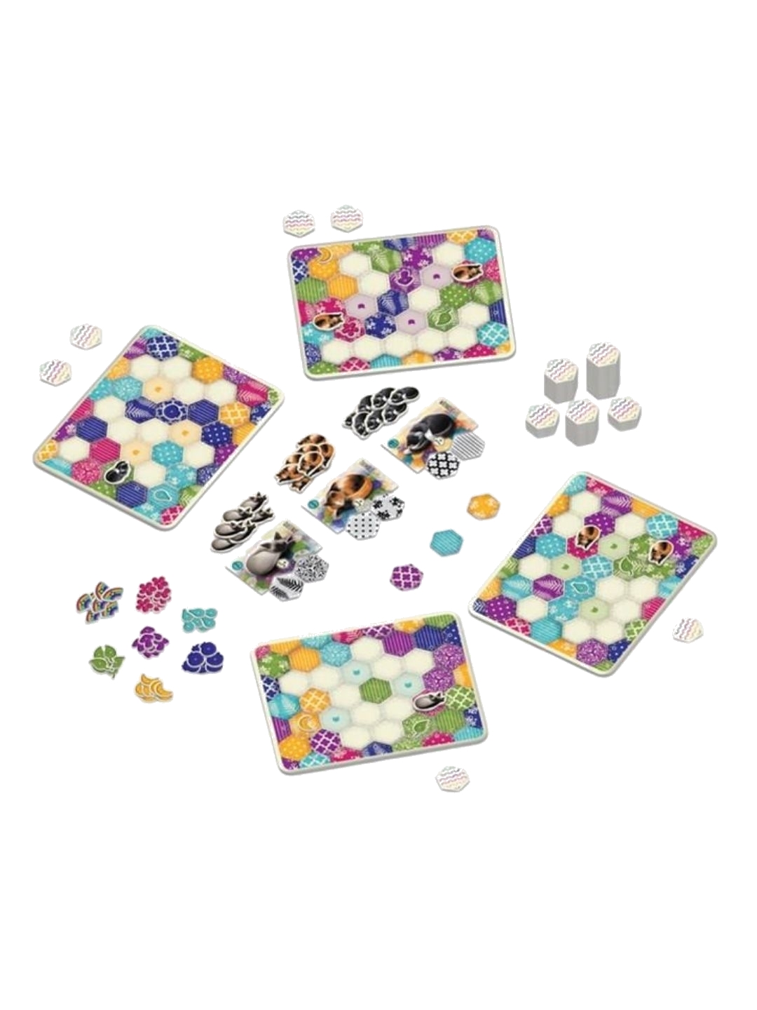 - Συμπεριλαμβάνονται: 4 ταμπλό, 108 πλακίδια μπαλωμάτων, 80 δείκτες γατών, 52 δείκτες κουμπιών, 24 πλακίδια στόχων, 5 πλακίδια βαθμολόγησης γατών, 6 ασπρόμαυρα πλακίδια, μπλοκ βαθμολογίας, σακούλι, αρχιράφτης και οδηγίες