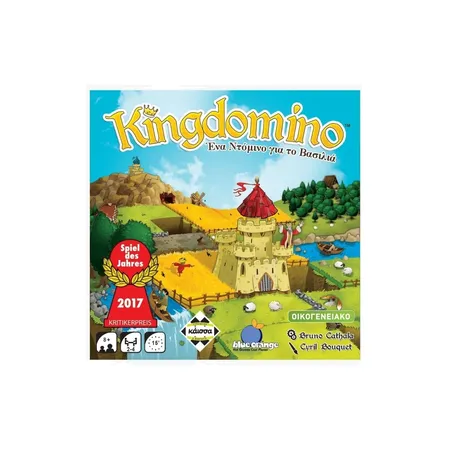 Γίνε ο Βασιλιάς που θα ανακαλύψει και θα κατακτήσει νέα εδάφη για να επεκτείνει το Βασίλειό του! Στο Kingdomino, εξερευνάτε διάφορα είδη εδάφους, όπως χωράφια με σιτηρά, λίμνες, βουνά, χωριά, δάση και κήπους, για να δημιουργήσετε τις πιο ισχυρές περιοχές. Προσοχή, γιατί και άλλοι Βασιλιάδες διεκδικούν αυτά τα εδάφη και η στρατηγική σας θα κρίνει την επιτυχία σας.