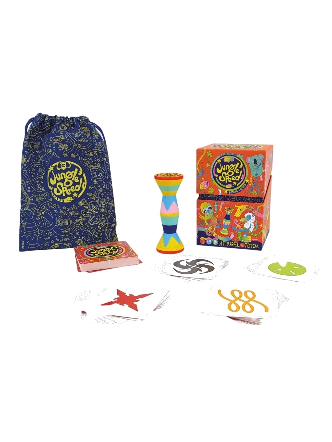 Ανακαλύψτε τη νέα, limited edition έκδοση του κλασικού Jungle Speed, με εικονογράφηση από το Bertone Studio. Έχετε κοφτερό μάτι και σβελτάδα; Παρατηρήστε προσεκτικά τις κάρτες που ανοίγουν οι αντίπαλοί σας, εντοπίστε αυτές που έχουν τα ίδια σχέδια με τις δικές σας, αρπάξτε το Τοτέμ και ξεφορτωθείτε τις κάρτες σας! Όταν φύγουν όλες οι κάρτες, έχετε κερδίσει!