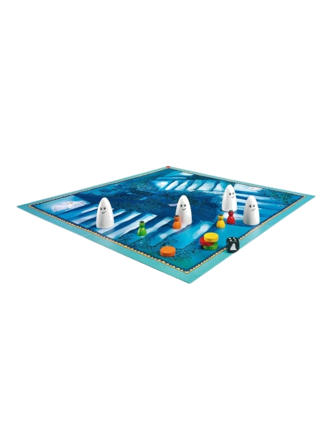 Στην κορυφή της σκάλας ενός παλιού αρχοντικού σκανδαλεύει ένα παιχνιδιάρικο φάντασμα, τρομάζοντας όποιον τολμήσει να ανέβει. Τέσσερα παιδιά αποφασίζουν να μεταμφιεστούν σε φαντάσματα για να το αντιμετωπίσουν, ανεβαίνοντας τη σκάλα με σκοπό να το τρομάξουν. Ωστόσο, η μνήμη και η παρατηρητικότητα είναι κρίσιμες: πρέπει να θυμάστε ποιο παιδί κρύβεται κάτω από κάθε φάντασμα για να μπορέσετε να κερδίσετε τον γύρο. Ένα παιχνίδι γεμάτο γέλιο, στρατηγική και διασκέδαση, ιδανικό για μικρούς παίκτες που θέλουν να δοκιμάσουν την αντίληψη και τα αντανακλαστικά τους.