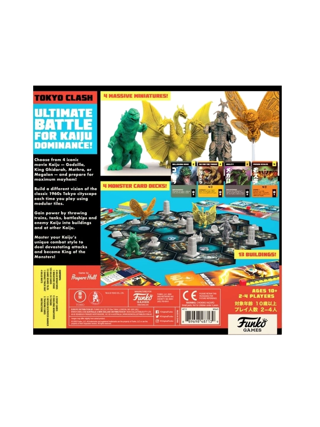 Στο επιτραπέζιο παιχνίδι Godzilla: Tokyo Clash, θα γίνεις ένα από τα πιο τρομακτικά τέρατα της γης — Godzilla, Mothra, King Ghidorah, και Megalon. "Ποδοπάτησε" την πόλη στο Tokyo, , εξαπέλυσε τρομερές επιθέσεις και πέταξε αυτοκίνητα, τρένα και πολεμικά πλοία στους εχθρούς σου! Γίνε ο κυρίαρχος ενός τέρατος Kaiju και μάθε τις επιθέσεις του για να καταφέρεις να κυριαρχήσεις στην πόλη, πριν οι άνθρωποι απομακρύνουν τα τέρατα από την πόλη! - Ηλικία 10+ - Παίκτες: 2-4 - Κατασκευαστής Funko - Αγγλικά - Imported