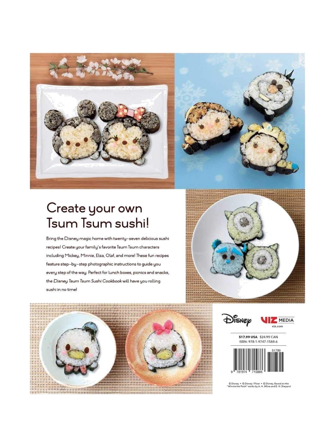 Δημιούργησε καταπληκτικό σούσι εμπνευσμένο από το Tsum Tsum με αυτό το νέο βιβλίο μαγειρικής σούσι της Disney! Φέρε τη μαγεία της Disney στο σπίτι σου, με είκοσι επτά νόστιμες συνταγές σούσι! - Paperback | 88 σελίδες - ΕΚδότης Viz Media, Subs. of Shogakukan Inc - Συγγραφέας Emi Tsuneoka - 210 x 260 x 10mm - English