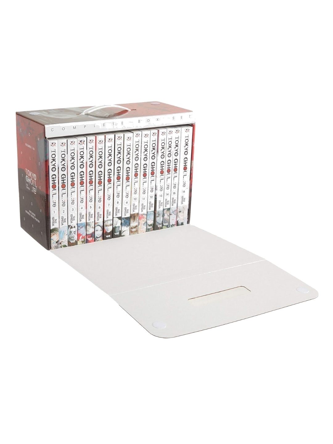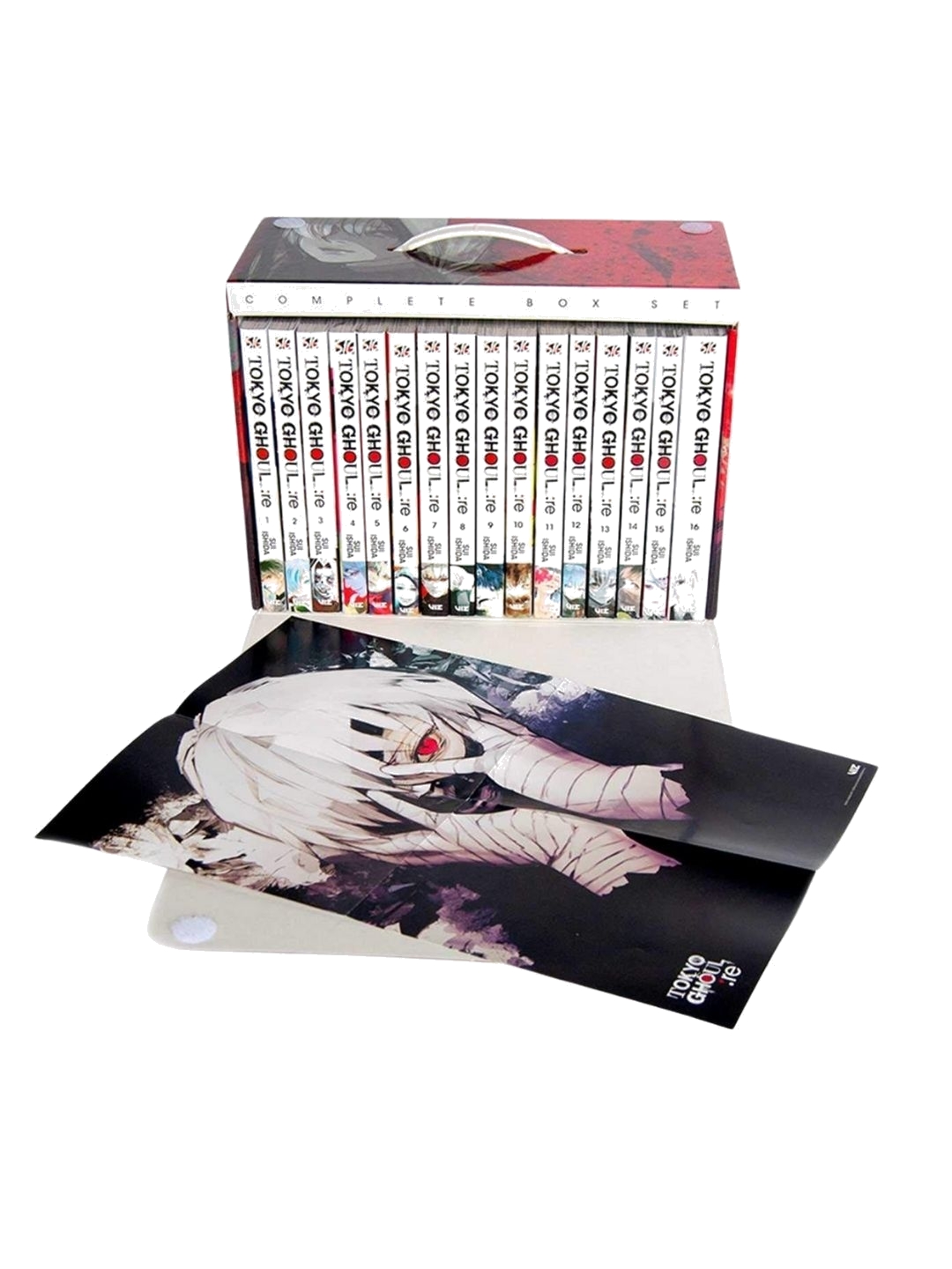 Στον κόσμο του Tokyo Ghoul, μερικές φορές ο μόνος τρόπος για να πολεμήσεις τα τέρατα είναι να γίνεις ένα από αυτά. . . Ένα box set που περιλαμβάνει και τους 16 τόμους της αρχικής σειράς Tokyo Ghoul: re, με μια αποκλειστική αφίσα διπλής όψης. "The Commission of Counter Ghoul is the only organization fighting the Ghoul menace, and they will use every tool at their disposal to protect humanity from its ultimate predator. Their newest weapon in this hidden war is an experimental procedure that implants human investigators with a Ghoul's Kagune, giving them Ghoul powers and abilities. But both the procedure and the newly formed Qs Squad are untested. Will they become heroes...or monsters?! " - Paperback - Publisher Viz Media, Subs. of Shogakukan Inc - Author Sui Ishida
