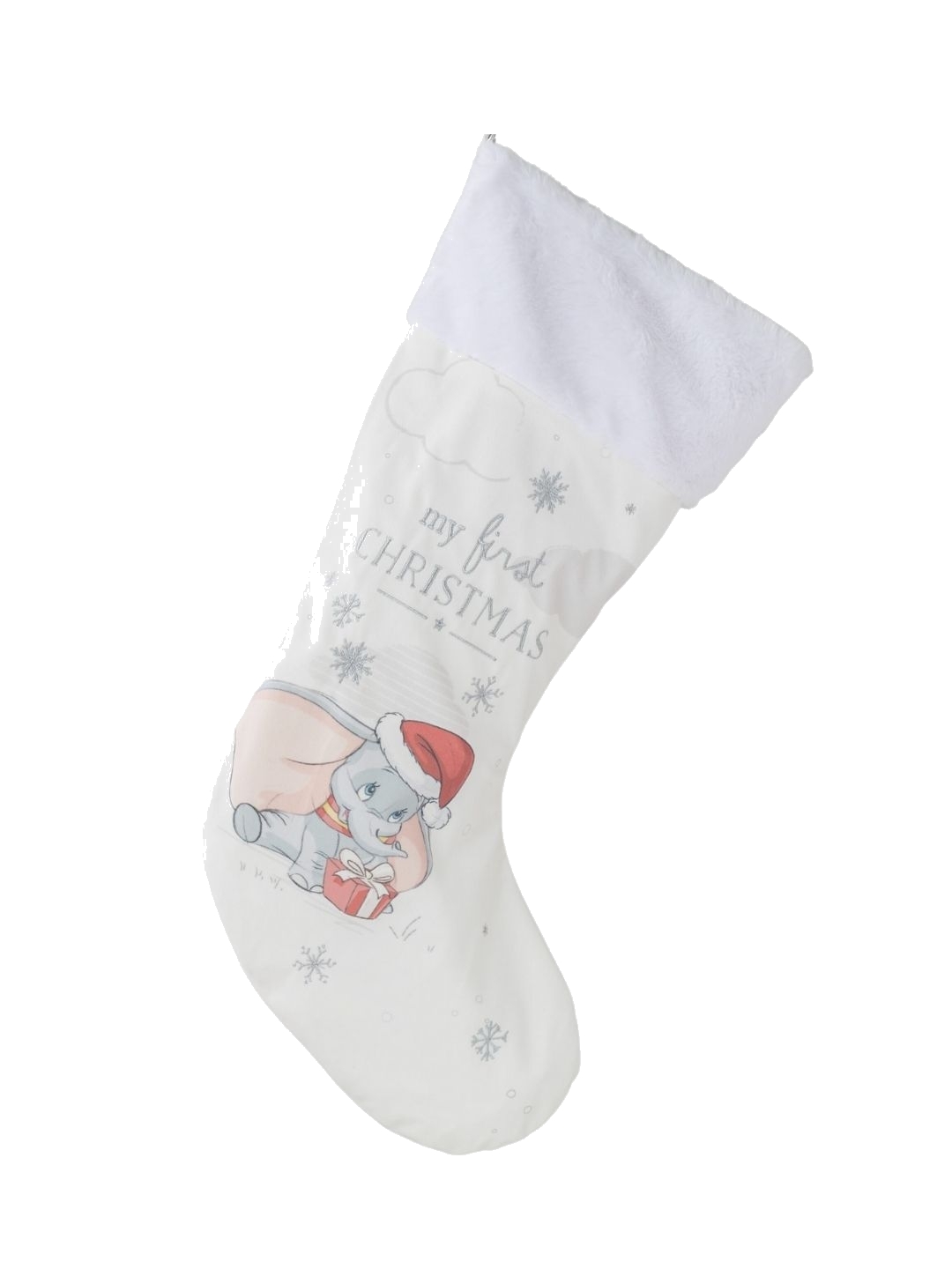Αυτή η χαριτωμένη Χριστουγεννιάτικη Κάλτσα Dumbo θα προσθέσει λίγη μαγεία στην πρώτη Χριστουγεννιάτικη γιορτή κάθε μικρού παιδιού. Είναι η ιδανική επιλογή για ένα σημαντικό δώρο για εκείνους που καλωσόρισαν πρόσφατα ένα νέο μέλος στην οικογένειά τους. Αυτή η υφασμάτινη κάλτσα θα φανεί υπέροχη κρεμασμένη πάνω από το τζάκι την επόμενη Χριστουγεννιάτικη μέρα.