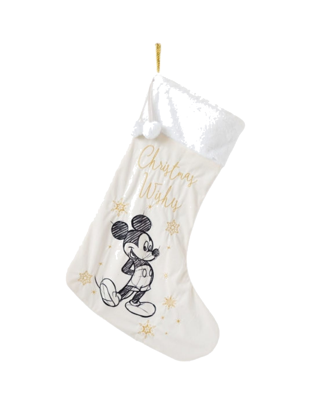 Ανακαλύψτε τη μαγεία των Χριστουγέννων με αυτήν την υπέροχη Χριστουγεννιάτικη Κάλτσα Mickey Mouse από την Disney, που θα δώσει μια μοναδική και πολυτελή αίσθηση στις γιορτές σας. Κατασκευασμένη από λευκό βελούδινο ύφασμα, αυτή η κάλτσα διαθέτει χρυσές κεντημένες λεπτομέρειες που προσθέτουν μια κομψή πινελιά στην ατμόσφαιρα των γιορτών.