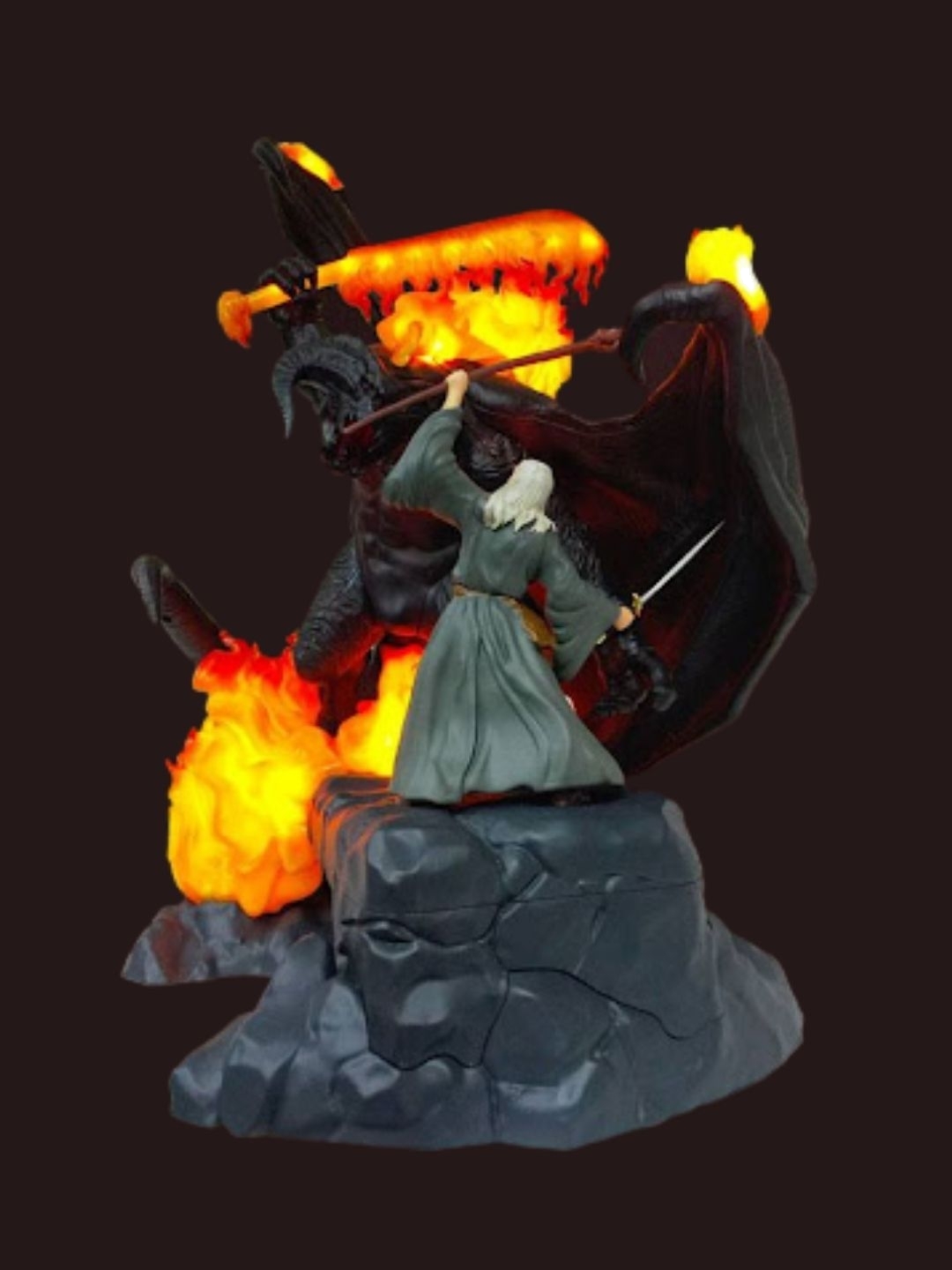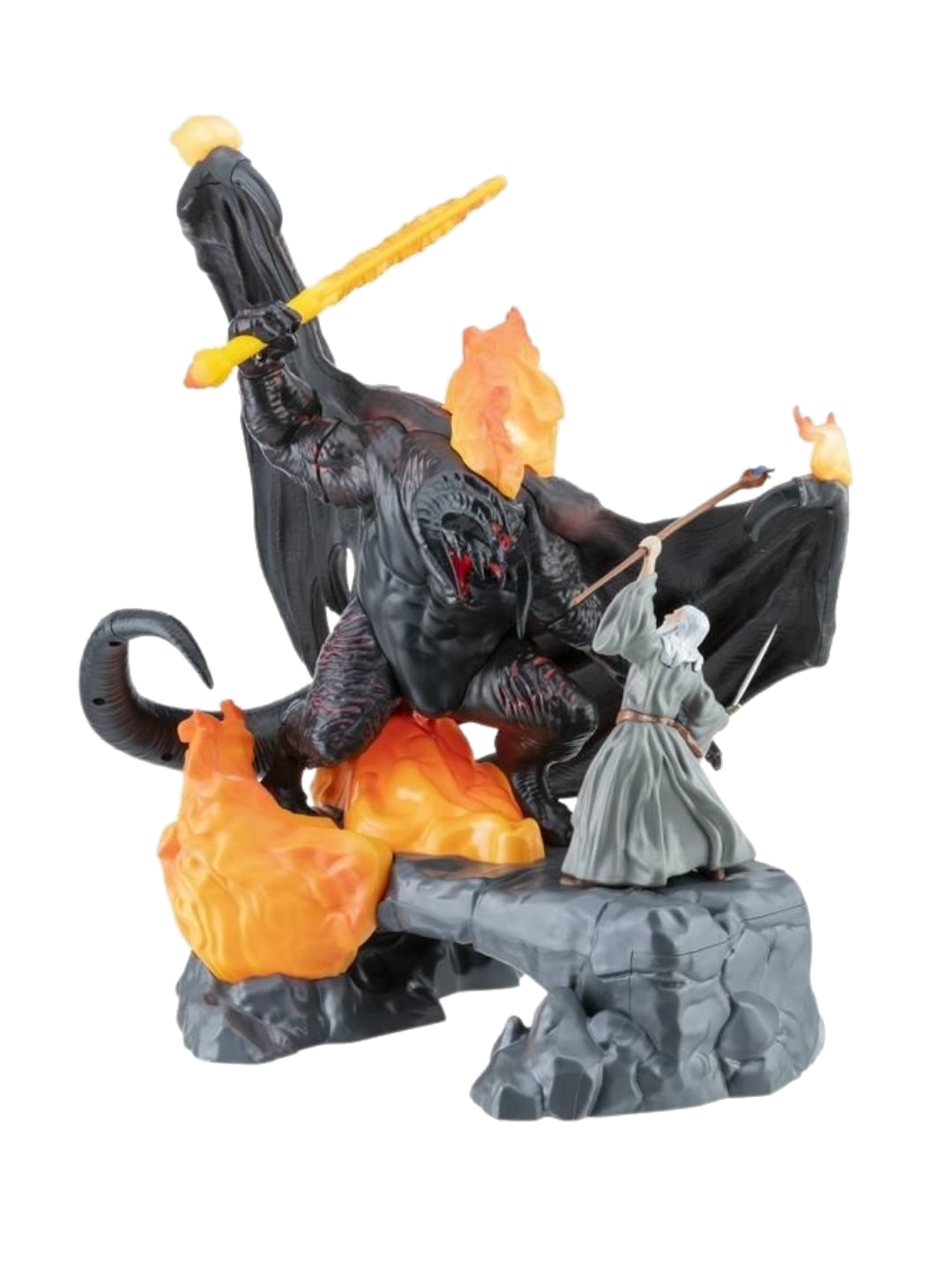 Με μεγάλη λεπτομέρεια αυτή η εκπληκτική φιγούρα του Άρχοντα των Δαχτυλιδιών αποτυπώνει τέλεια την αγριότητα της μάχης μεταξύ του Balrog και του Gandalf, με την όψη της φωτιάς να καίει παντού γύρω της όταν φωτίζεται με τη χρήση του καλωδίου USB που περιλαμβάνεται. Αυτό το πανέμορφο φωτιστικό είναι το τέλειο δώρο για κάθε φαν του Άρχοντα των Δαχτυλιδιών! - Επίσημο προϊόν - 37 εκ. ύψος