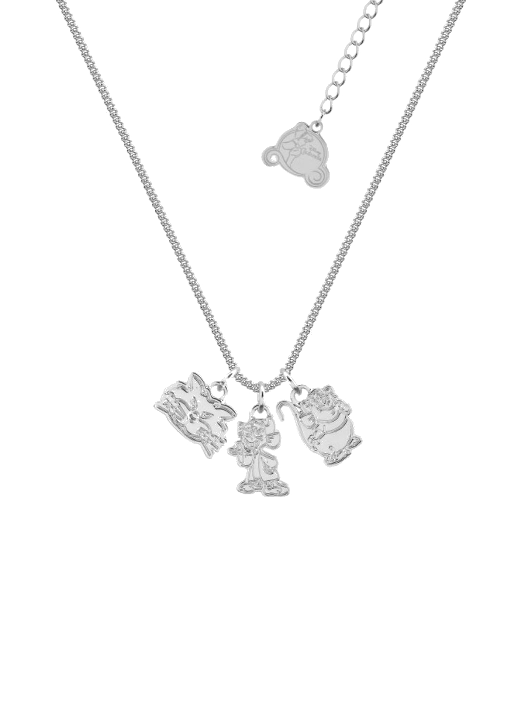 Disney Couture Ultimate Princess White Gold-Plated Cinderella Gus Jaq Lucifer Trio Necklace