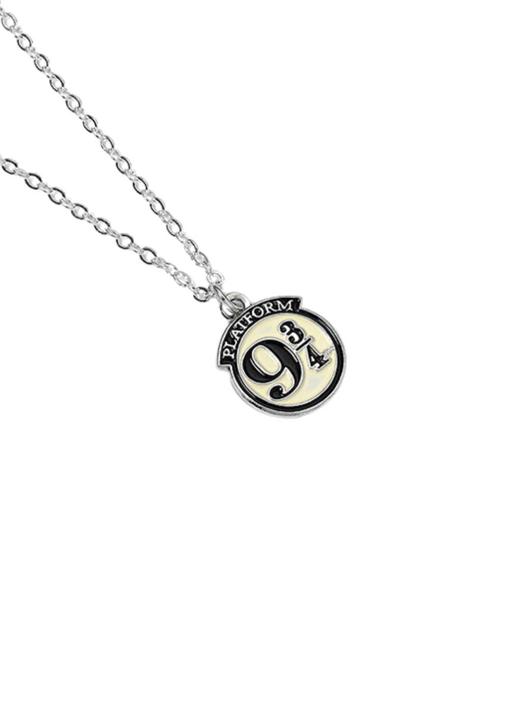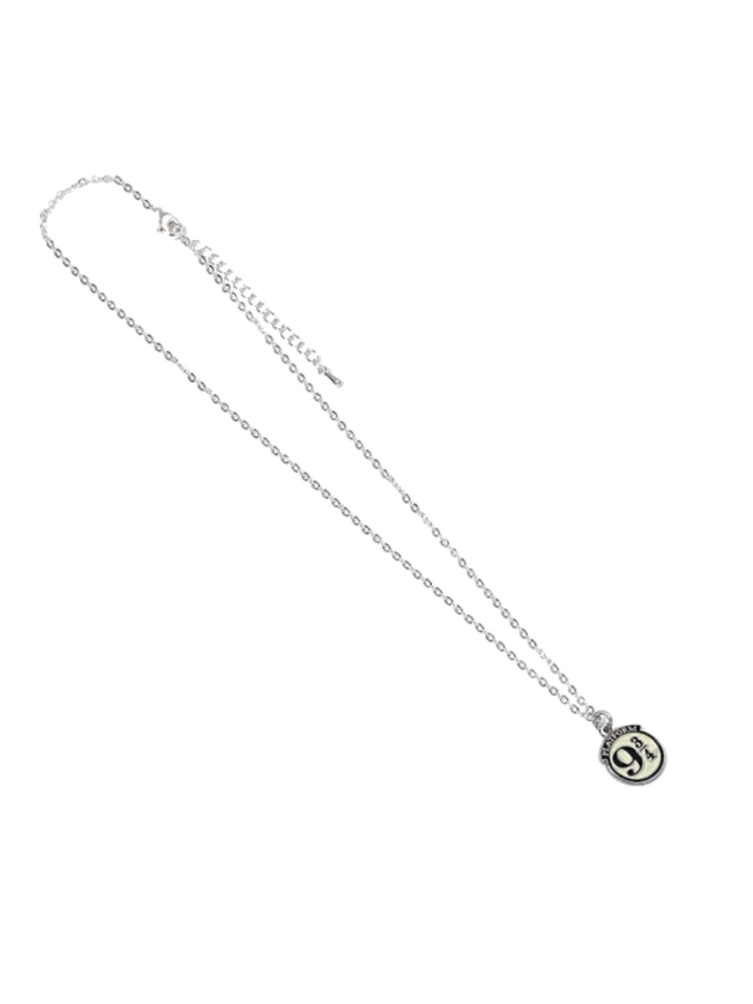 Αυτό το κολιέ Harry Potter Platform 9 3/4 διαθέτει μενταγιόν με το διάσημο σημάδι, σε ασημένια επίστρωση και αλυσίδα με κρίκους.