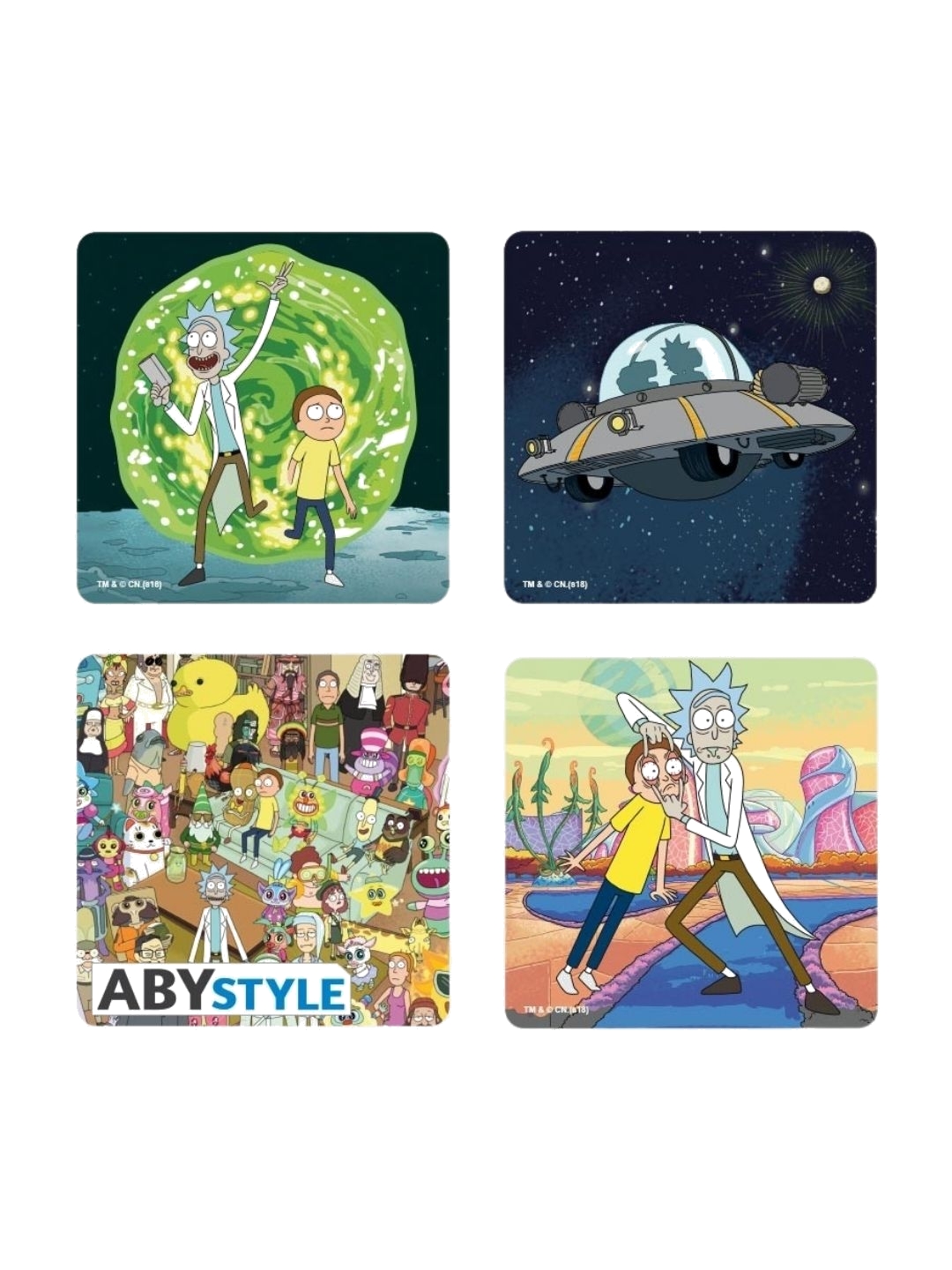 - Σετ από 4 σουβέρ με θέμα Rick & Morty.