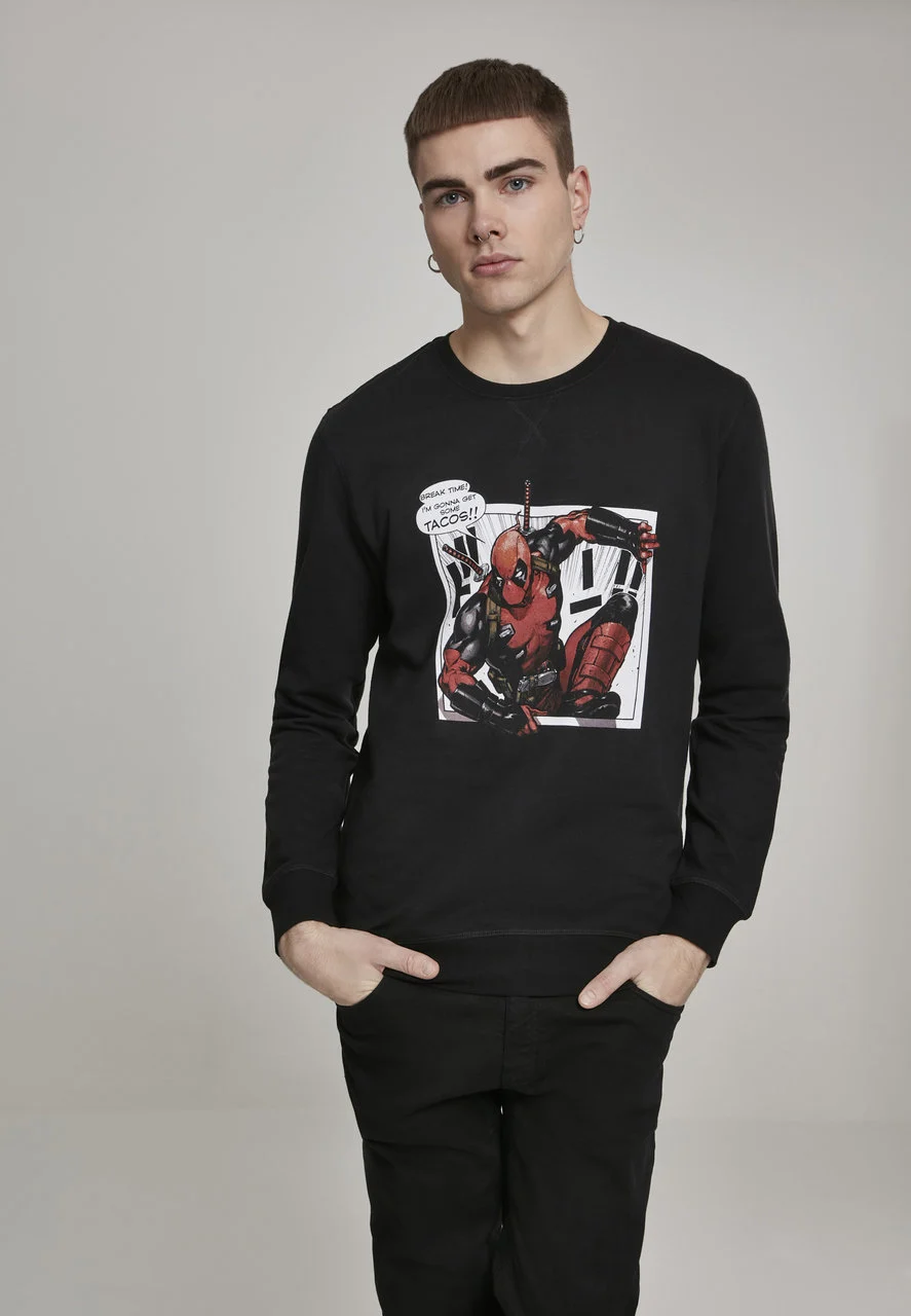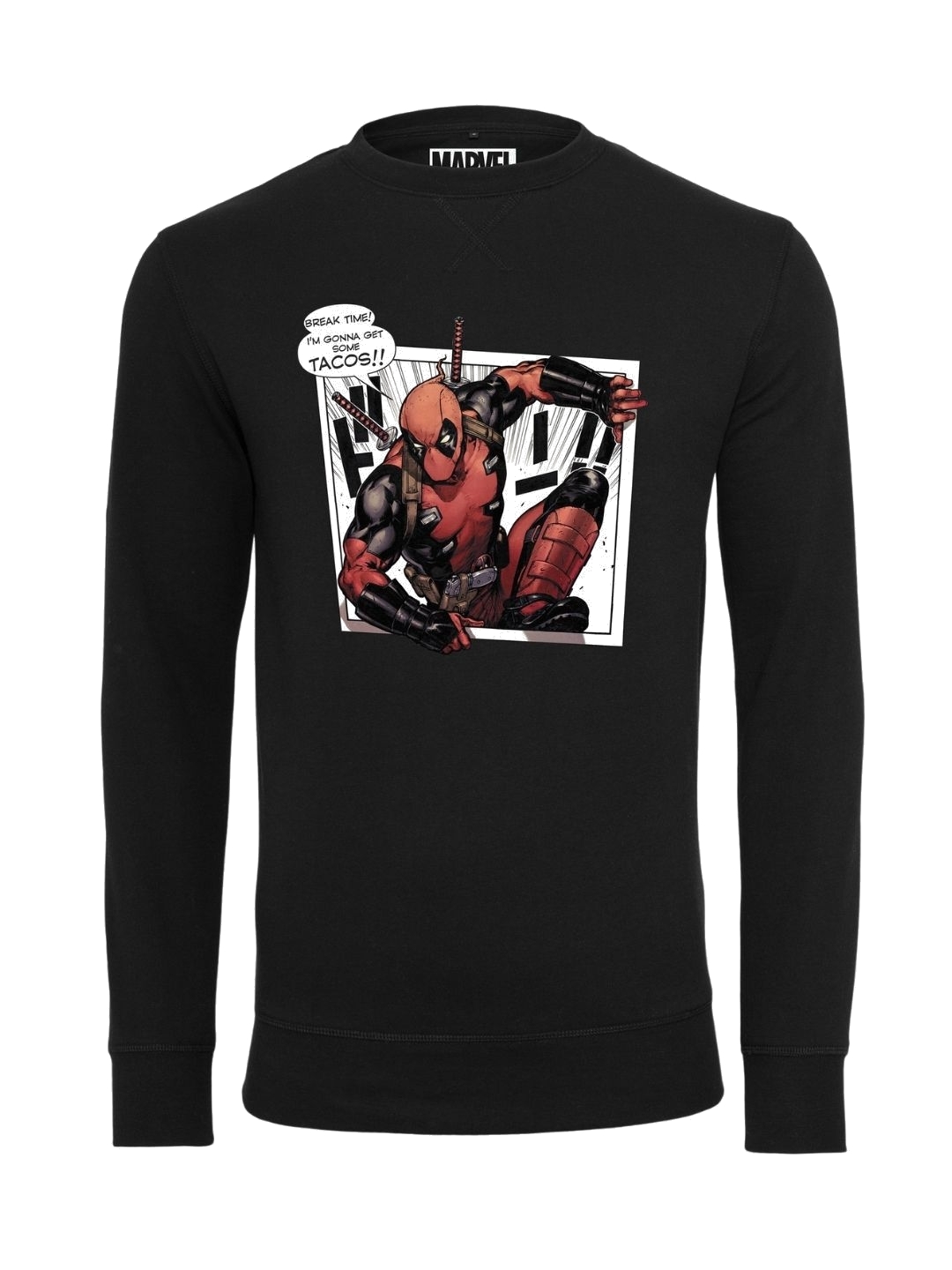 Φορέστε με στυλ αυτό το επίσημα εμπνευσμένο Deadpool crewneck, ιδανικό για τους θαυμαστές του αντιήρωα. Το φούτερ είναι κατασκευασμένο από 60% βαμβάκι και 40% πολυεστέρα, προσφέροντας άνεση και απαλότητα. Το ύφασμα διαθέτει ιδιότητες απορρόφησης υγρασίας, ιδανικό για καθημερινή χρήση. Διαθέτει στρογγυλή λαιμόκοψη και τυπωμένο σχέδιο με θέμα Deadpool και tacos, ενώ η φροντίδα του είναι εύκολη: πλύσιμο στο πλυντήριο στους 30°C με ήπιο πρόγραμμα, χωρίς χρήση στεγνωτηρίου. Το χρώμα του είναι μαύρο.