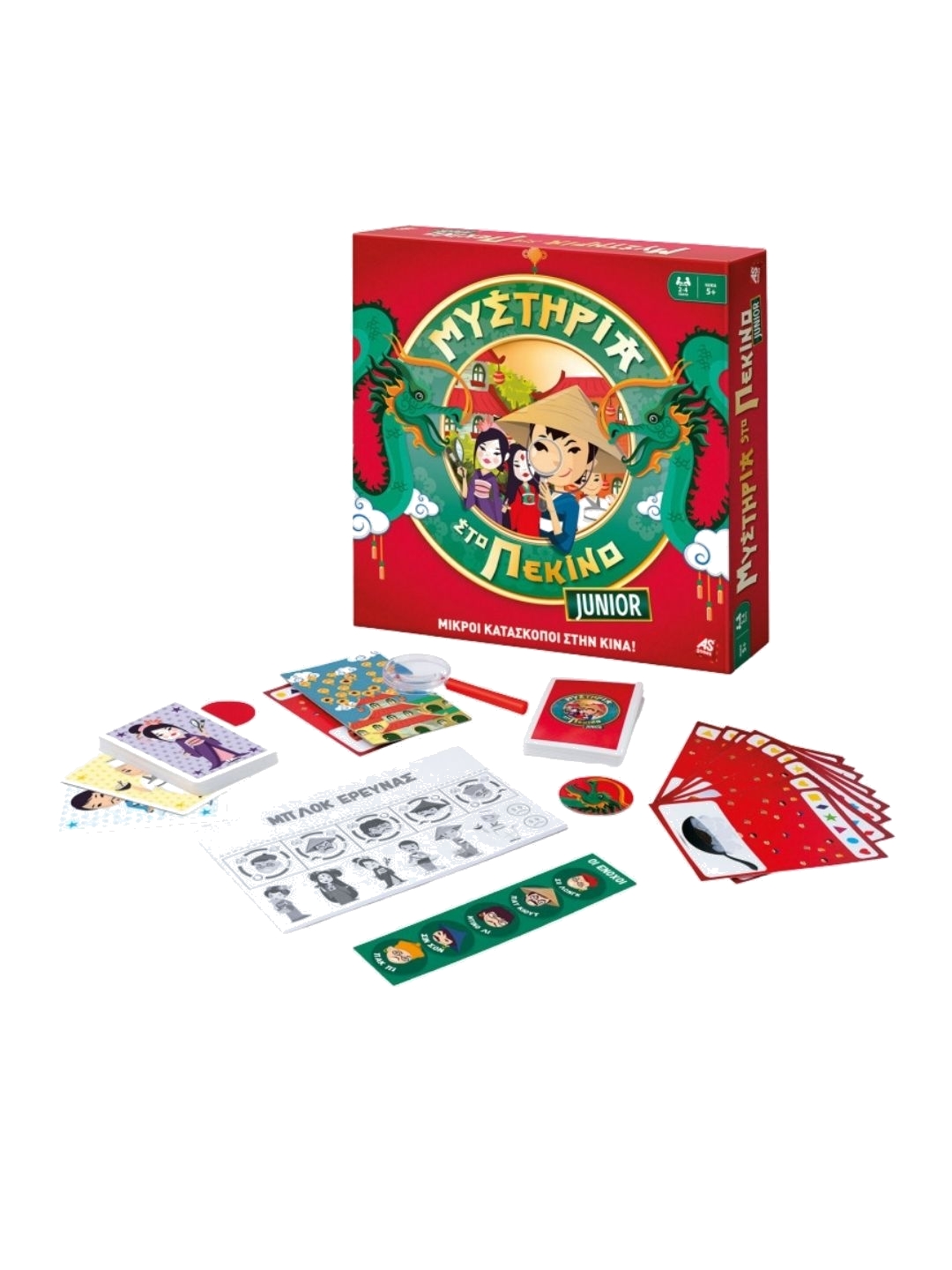 Ανακάλυψε τη junior έκδοση του αγαπημένου παιχνιδιού Μυστήρια στο Πεκίνο! Με 24 συναρπαστικά μυστήρια και 5 ύποπτους, οι μικροί ντετέκτιβ καλούνται να λύσουν τα πιο παράξενα γεγονότα στους δρόμους του Πεκίνο. Ποιος έσπασε το πορσελάνινο βάζο; Ποιος έριξε το κόκκινο κρασί; Χρησιμοποίησε τον κόκκινο αποκωδικοποιητή για να αποκαλύψεις χαρακτηριστικά των υπόπτων, όπως καπέλο, μουστάκι ή σκουλαρίκι, και σύλληψε τον ένοχο πρώτος! Οι μάρτυρες, τα αντικείμενα και τα τυχερά μπισκότα θα σε βοηθήσουν να λύσεις τα μυστήρια γρήγορα και διασκεδαστικά. Ένα παιχνίδι συνεργασίας και παρατηρητικότητας που θα ενθουσιάσει μικρούς ντετέκτιβ.